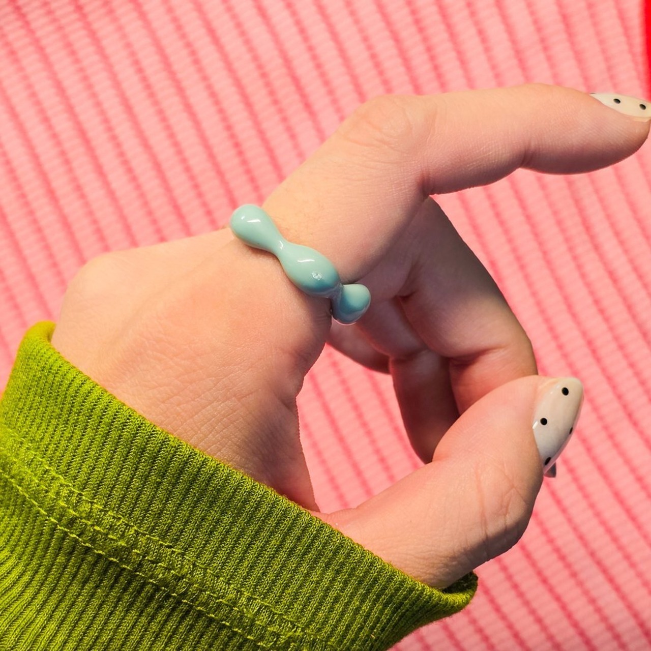 この「うねうねリング」は、見る人を思わず微笑ませるレトロポップなデザインが魅力です!