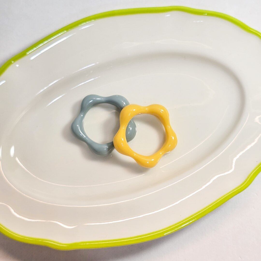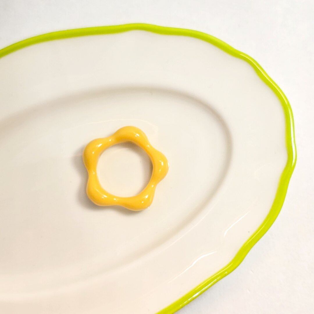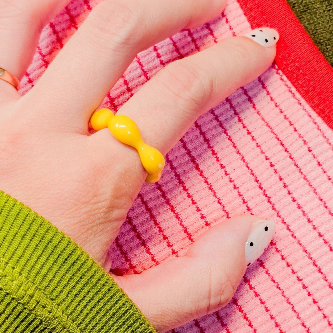 鮮やかな黄色のアクリル素材で作られたリングは、軽やかで着け心地も抜群★