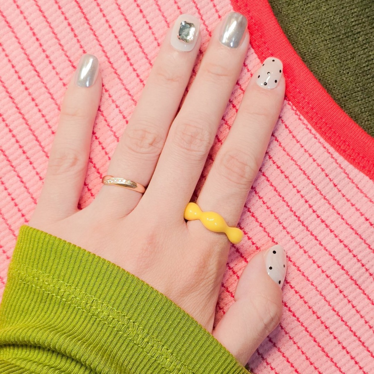 着けるたびに気分を明るくしてくれるこのリングは、日常の小さな楽しみとして、また特別な日の思い出としても大活躍しそう!