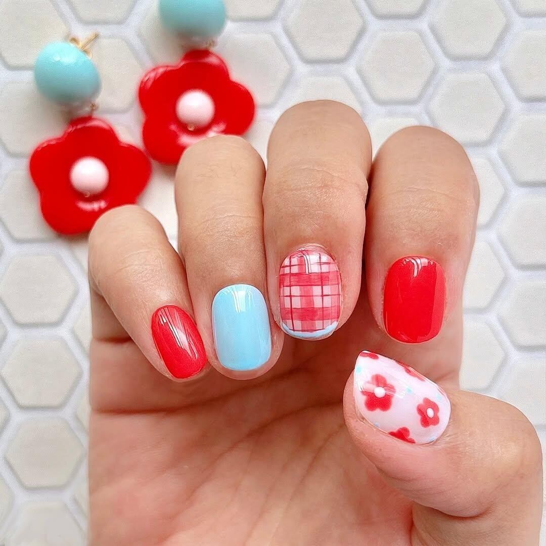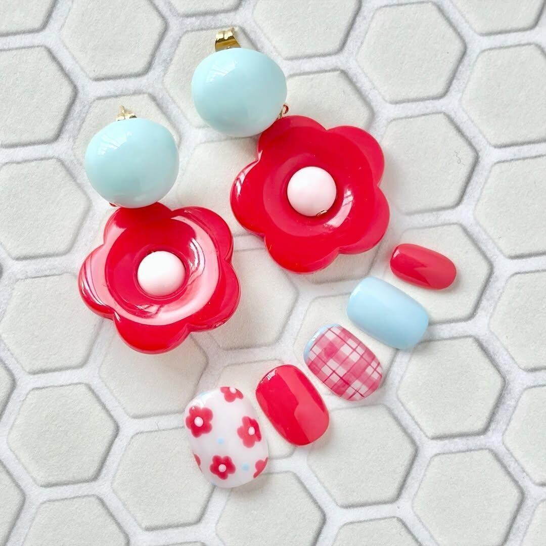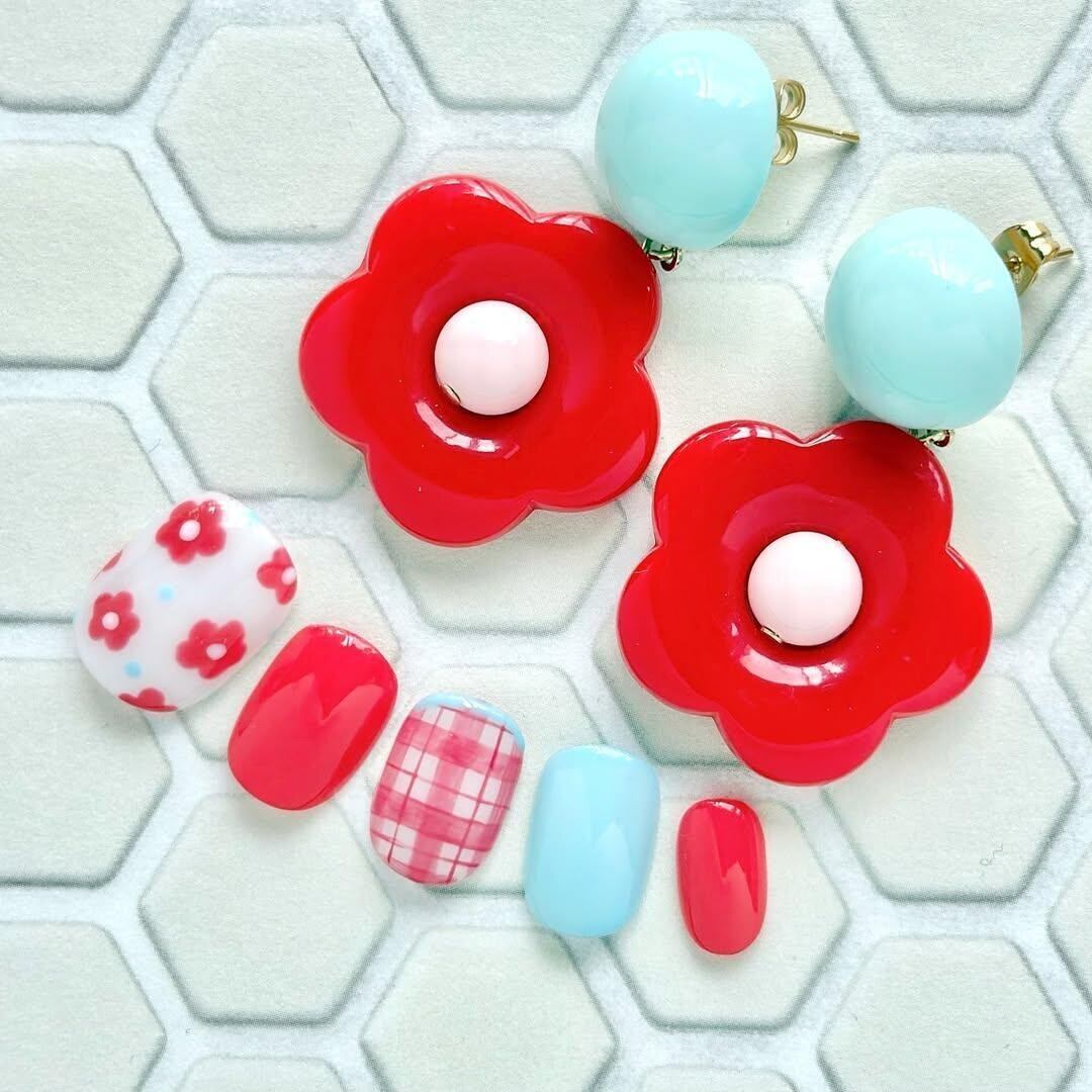 レトロフラワーのピアス&イヤリングとネイルチップの