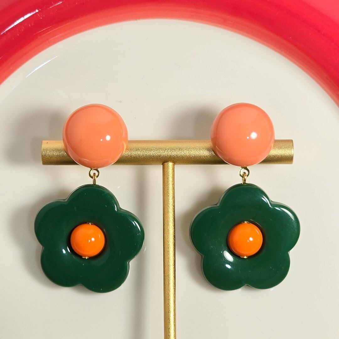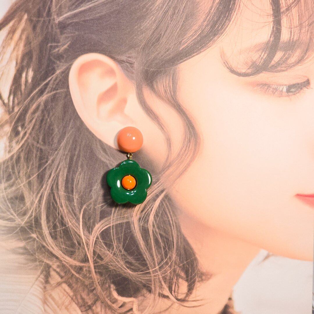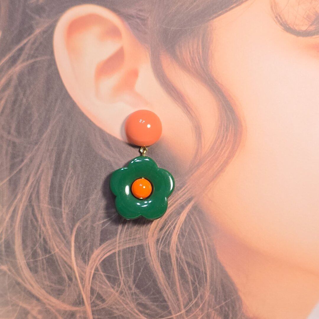 ⟬ レトロフラワー(オレンジ×グリーン)ピアス&イヤリング ⟭