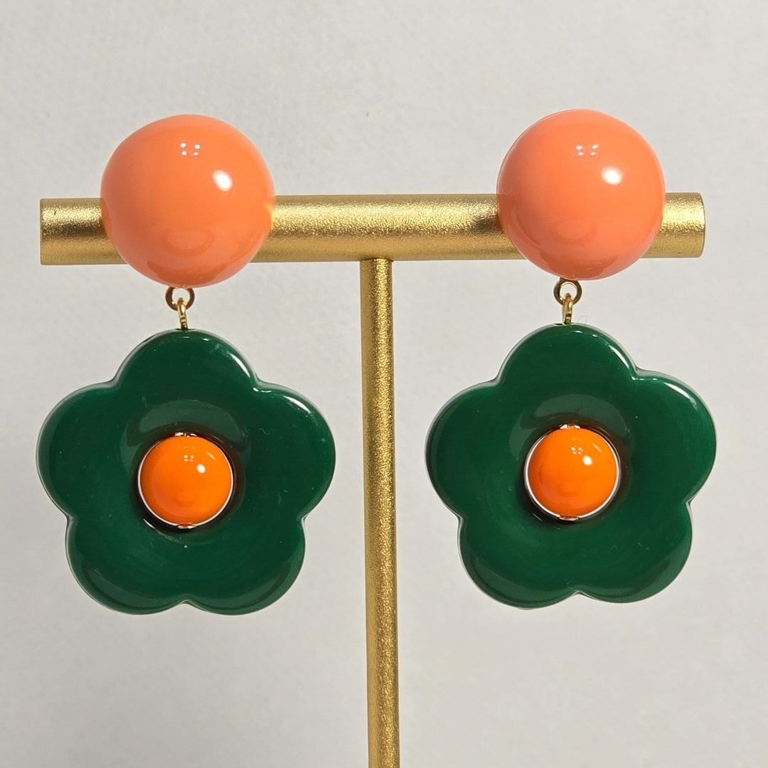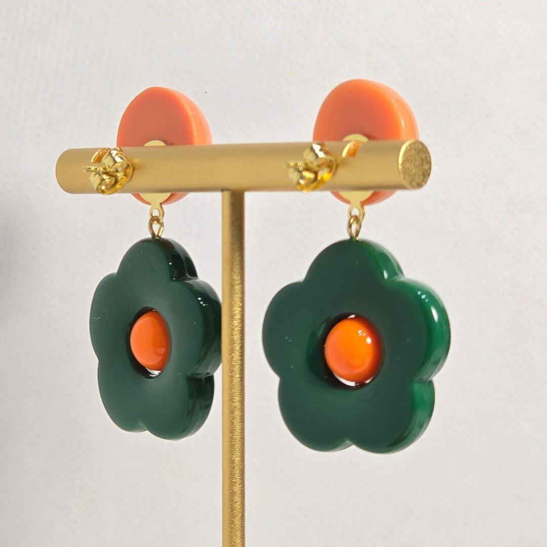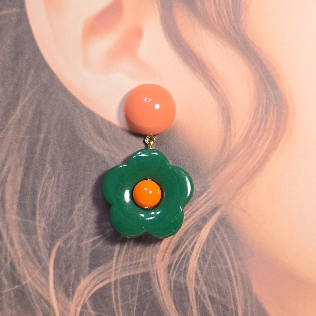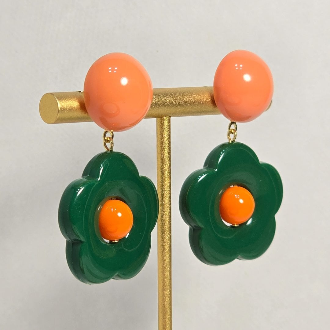 ⟬ レトロフラワー(オレンジ×グリーン)ピアス&イヤリング ⟭