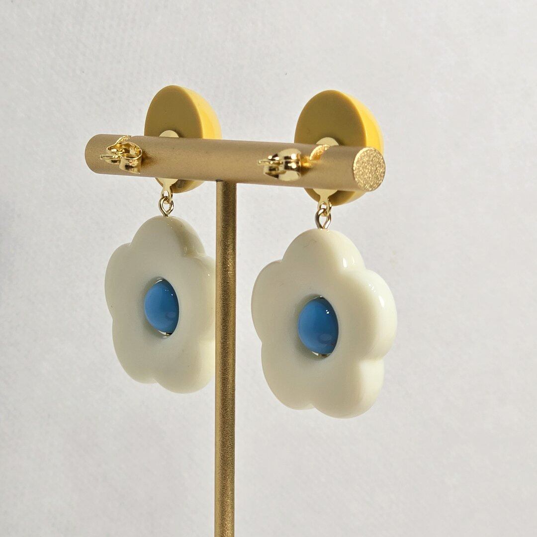 ⟬ レトロフラワー(イエロー×ホワイト)ピアス&イヤリング ⟭