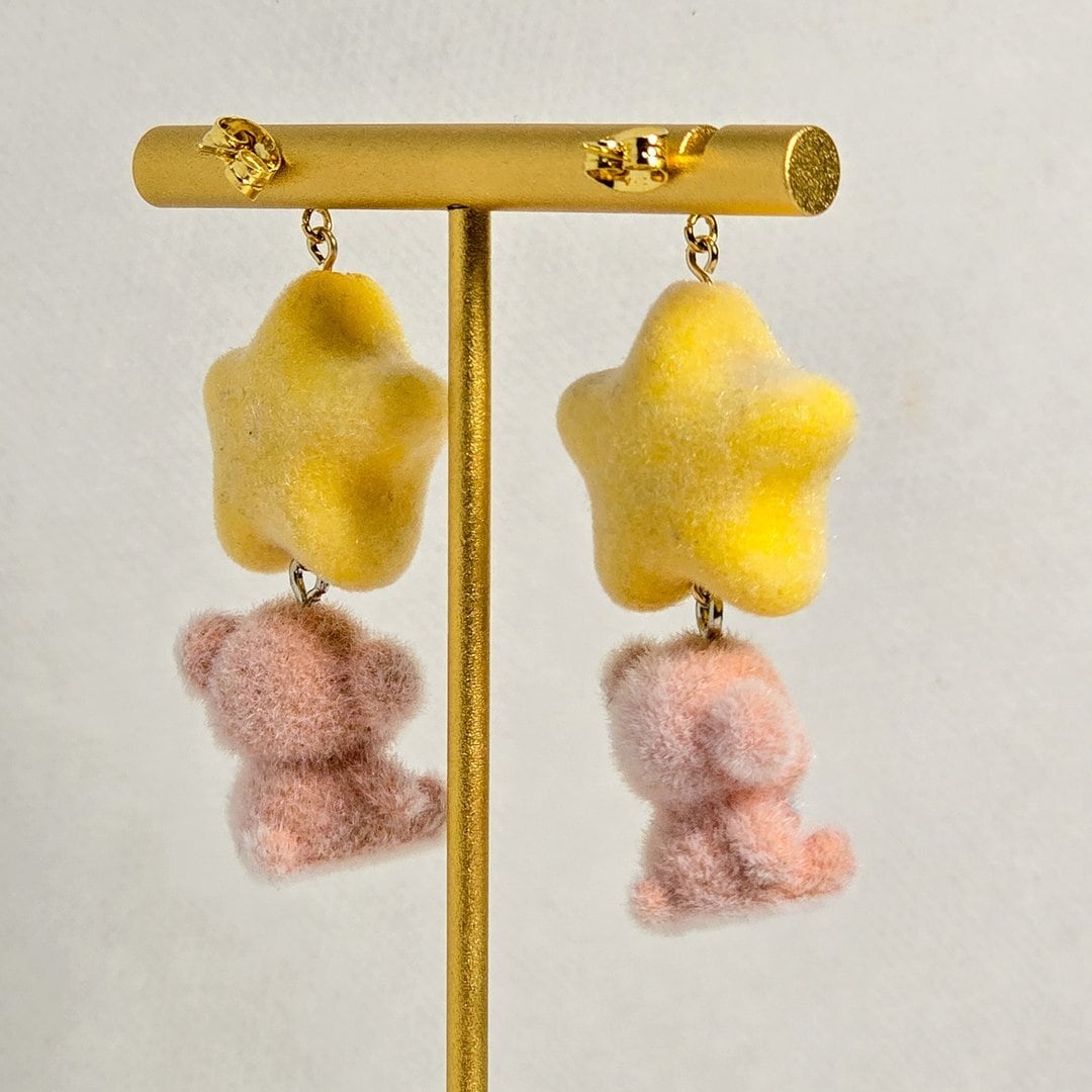 ⟬ ふわふわくまさんとお星様のピアス&イヤリング ⟭