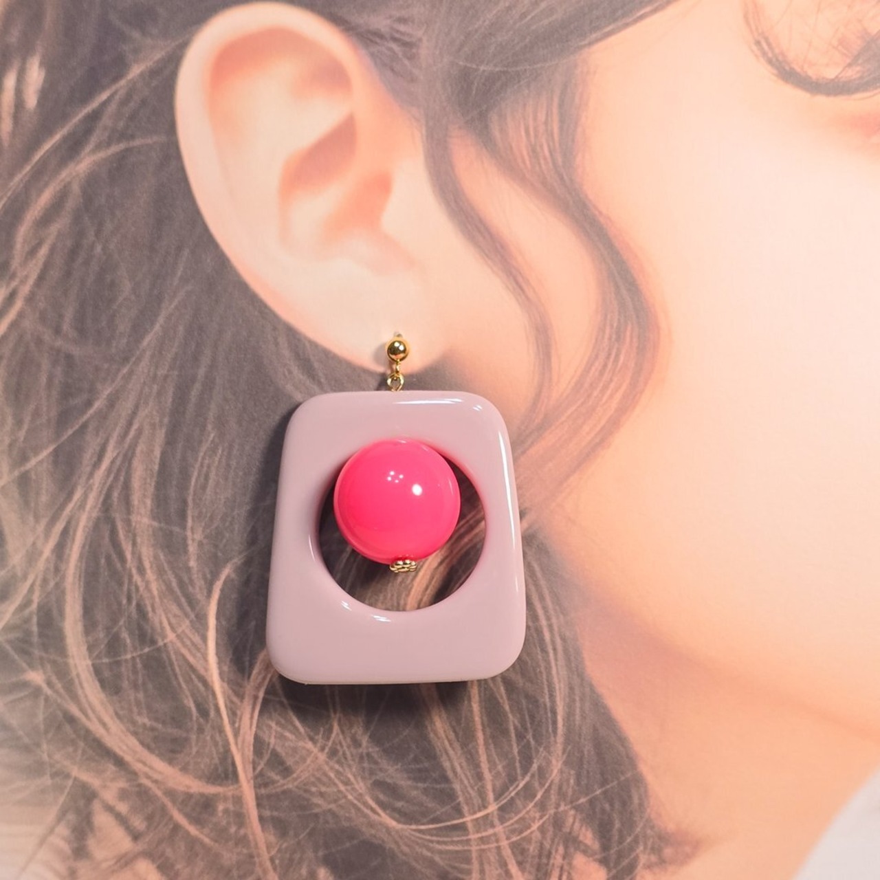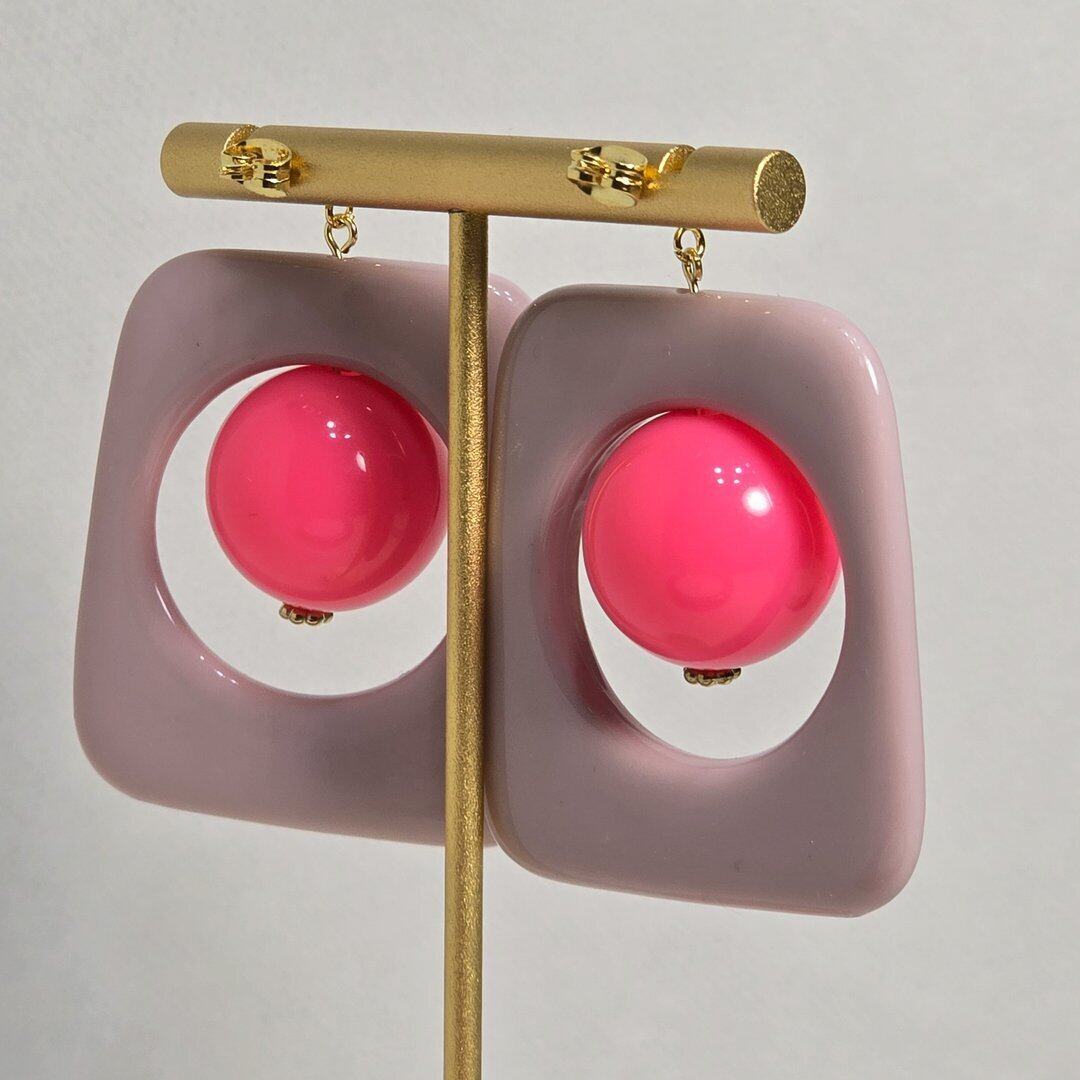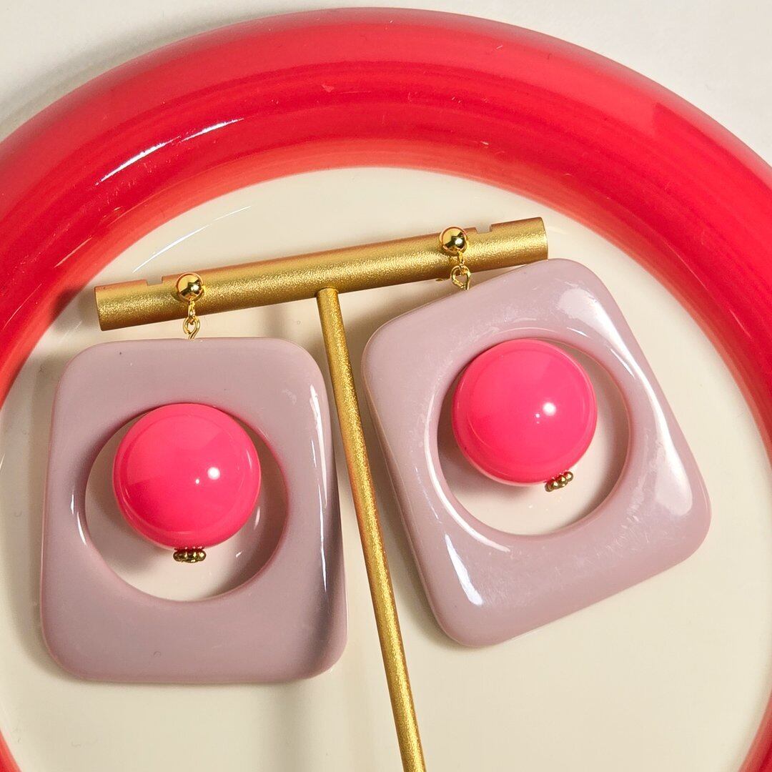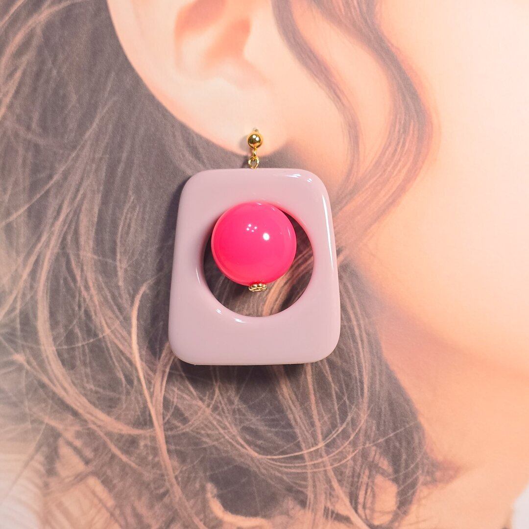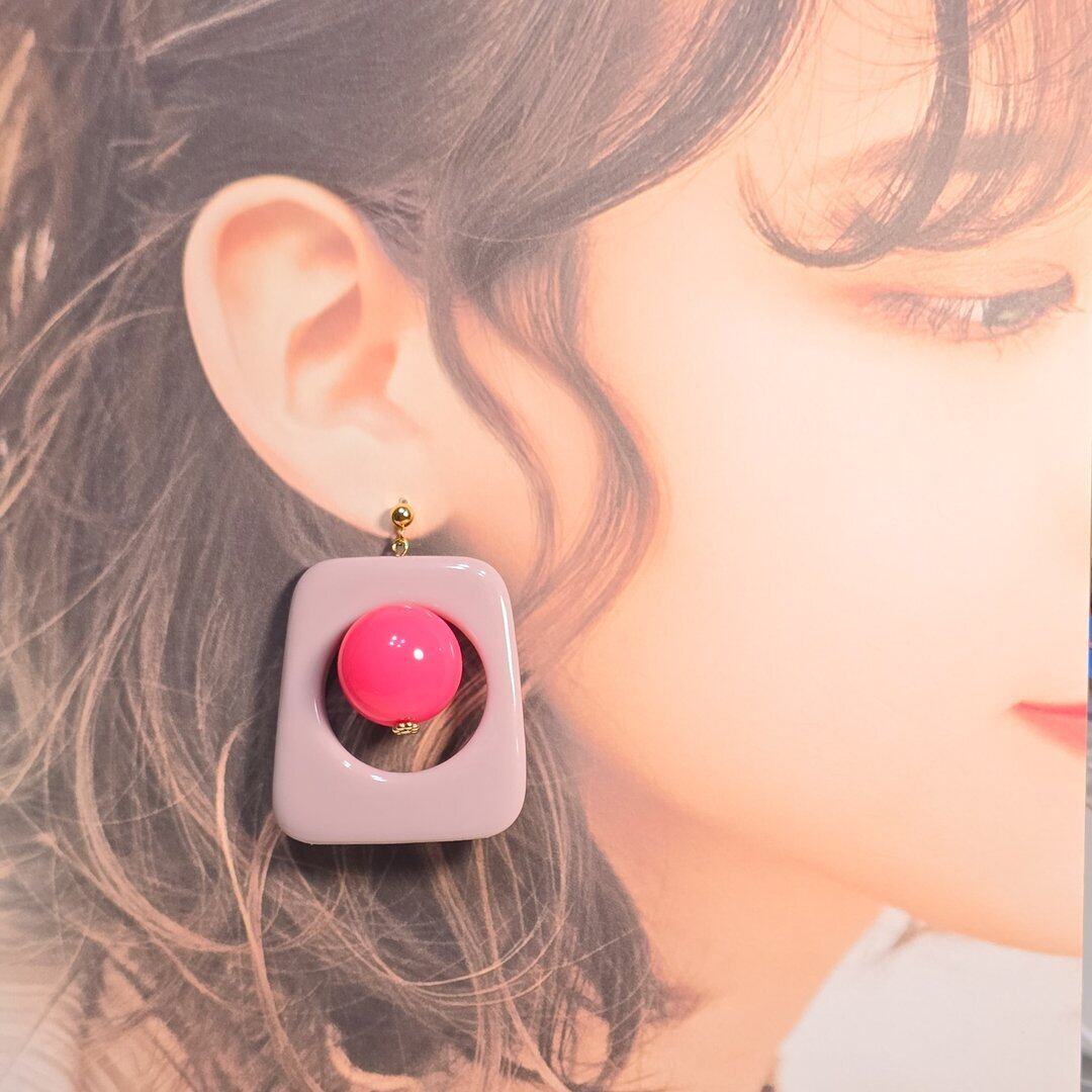 ⟬ ピンク×ピンクの大ぶりアクセントピアス&イヤリング ⟭