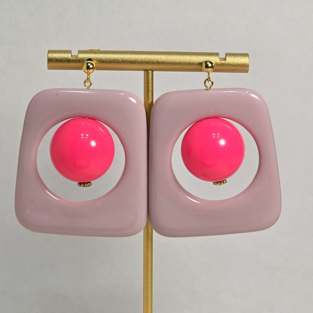No.267 ピンク×ピンクの大ぶりアクセントピアス&イヤリング