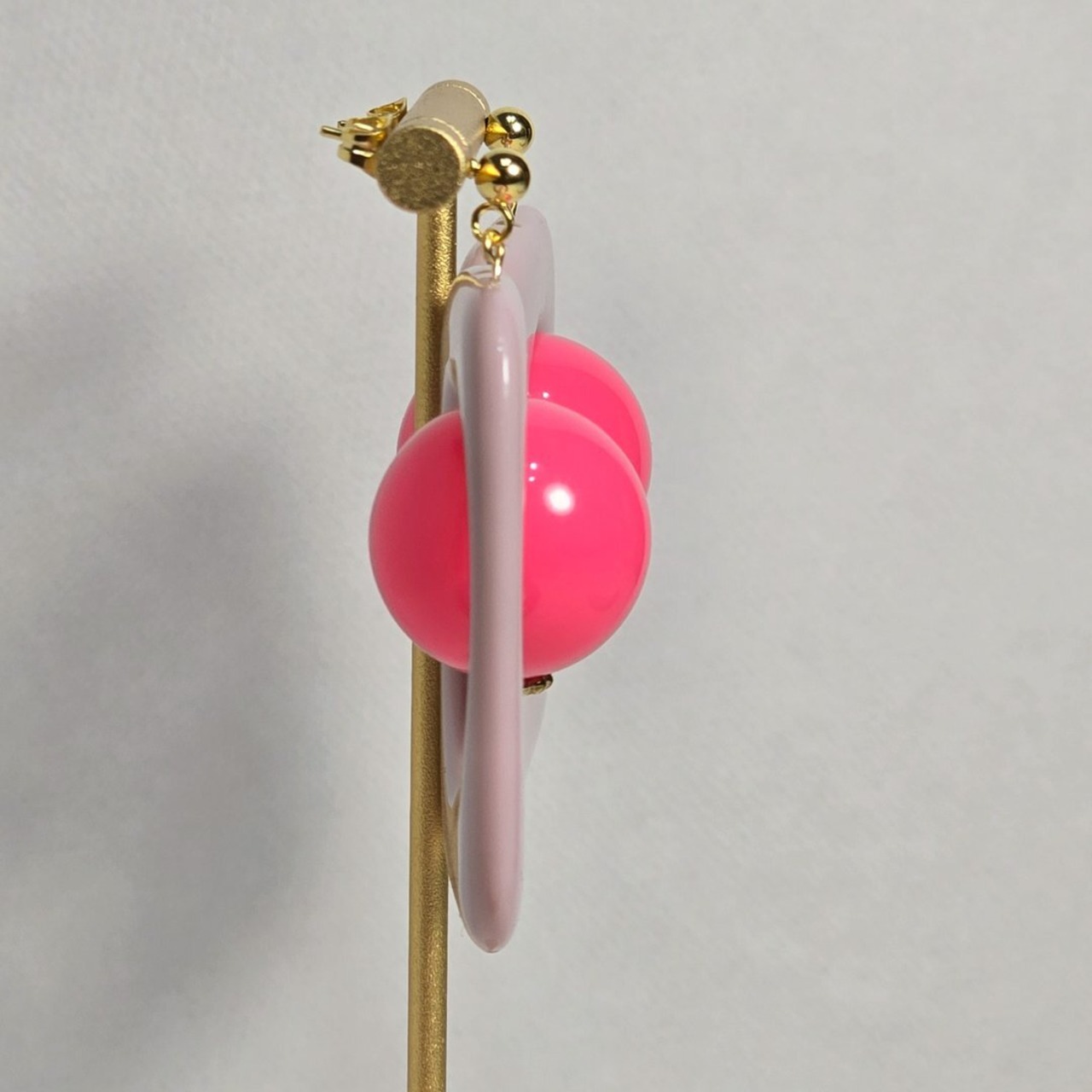 直径5cmの楕円形のピンクカラーにマゼンタカラーのピンクを合わせた、ピンク好きにはたまらないラブリーなデザインです♡