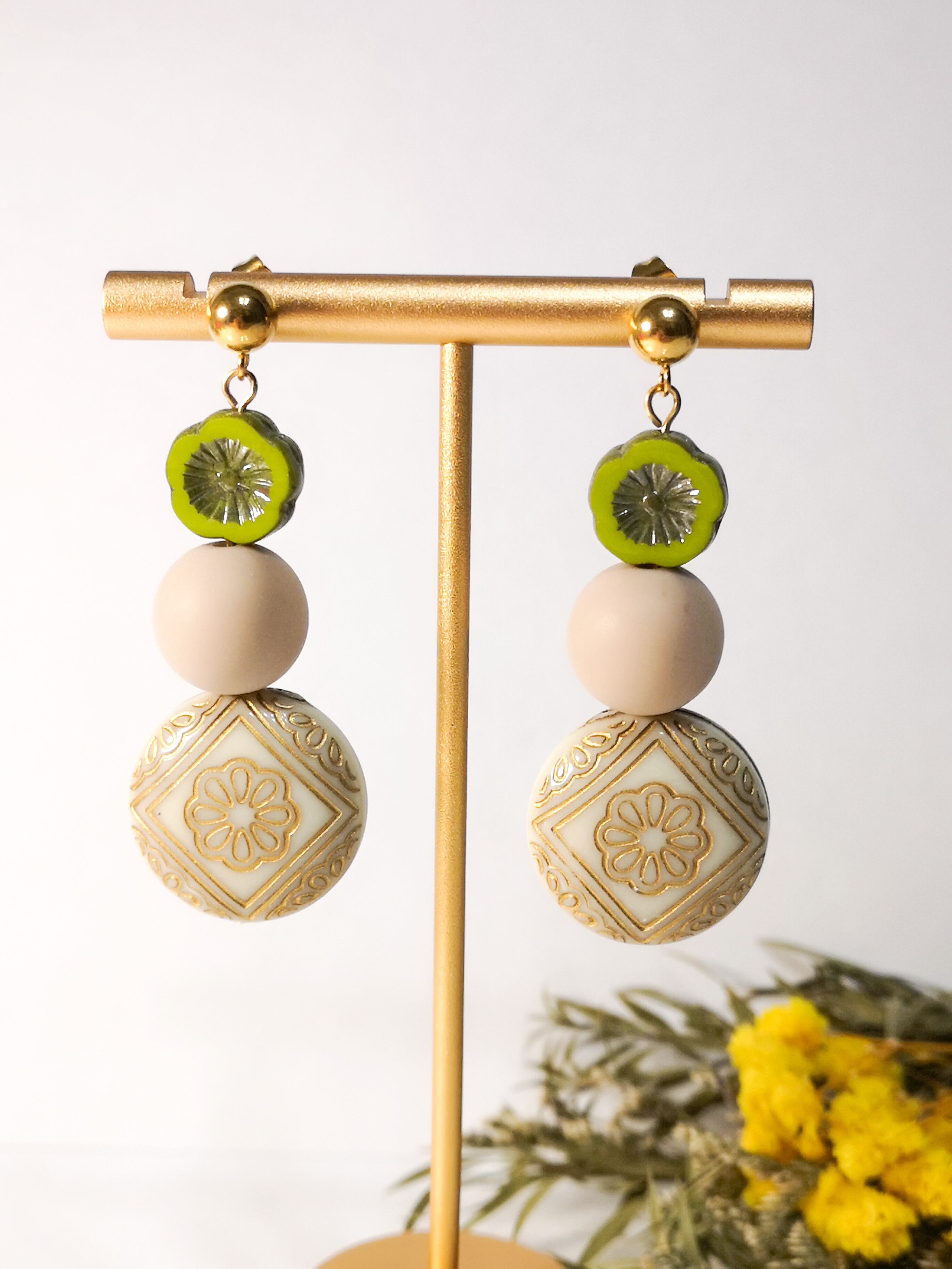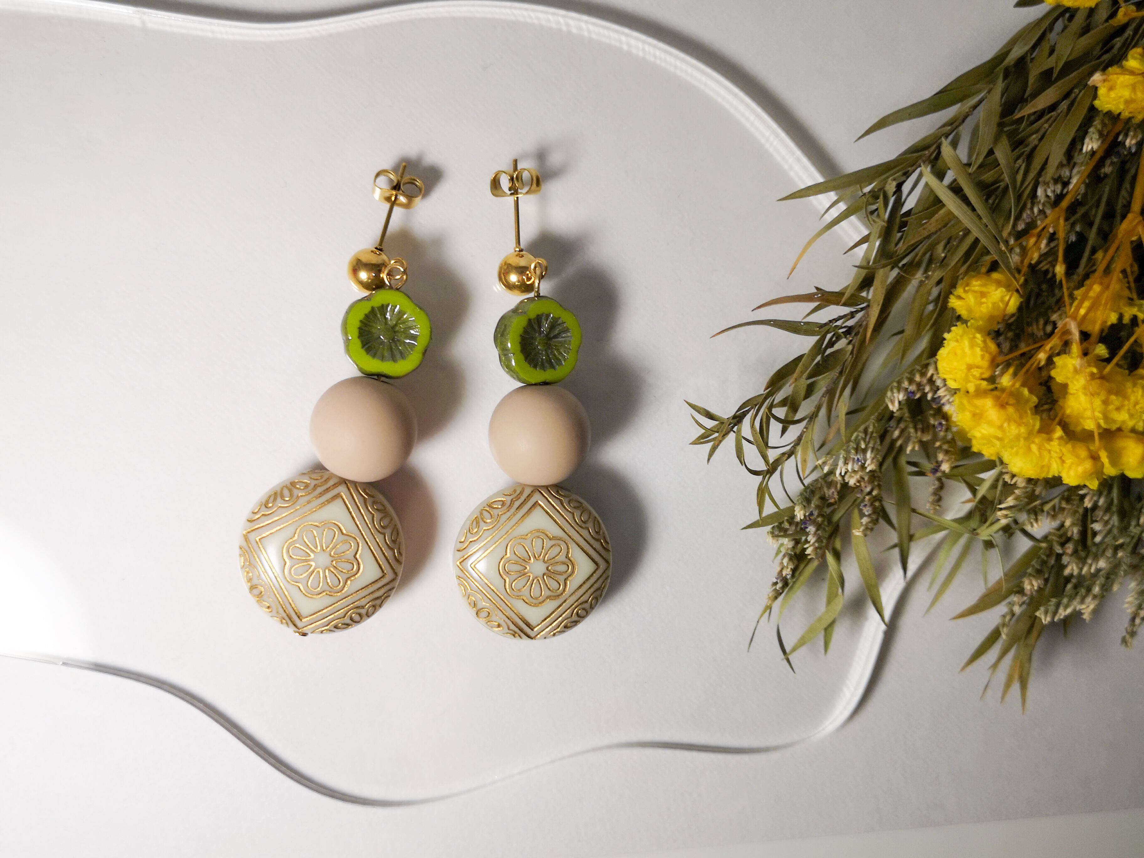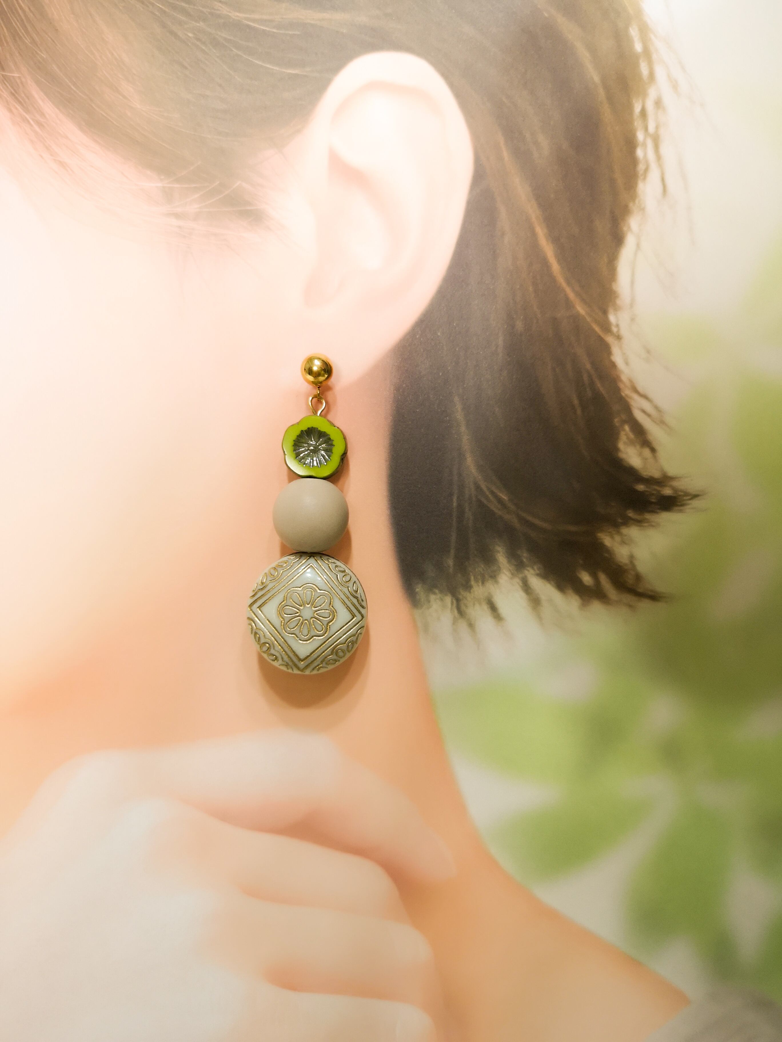 パッと明るいチェコグリーンとお花の可愛らしいデザインが魅力的な大ぶりのアクセサリーです❁︎