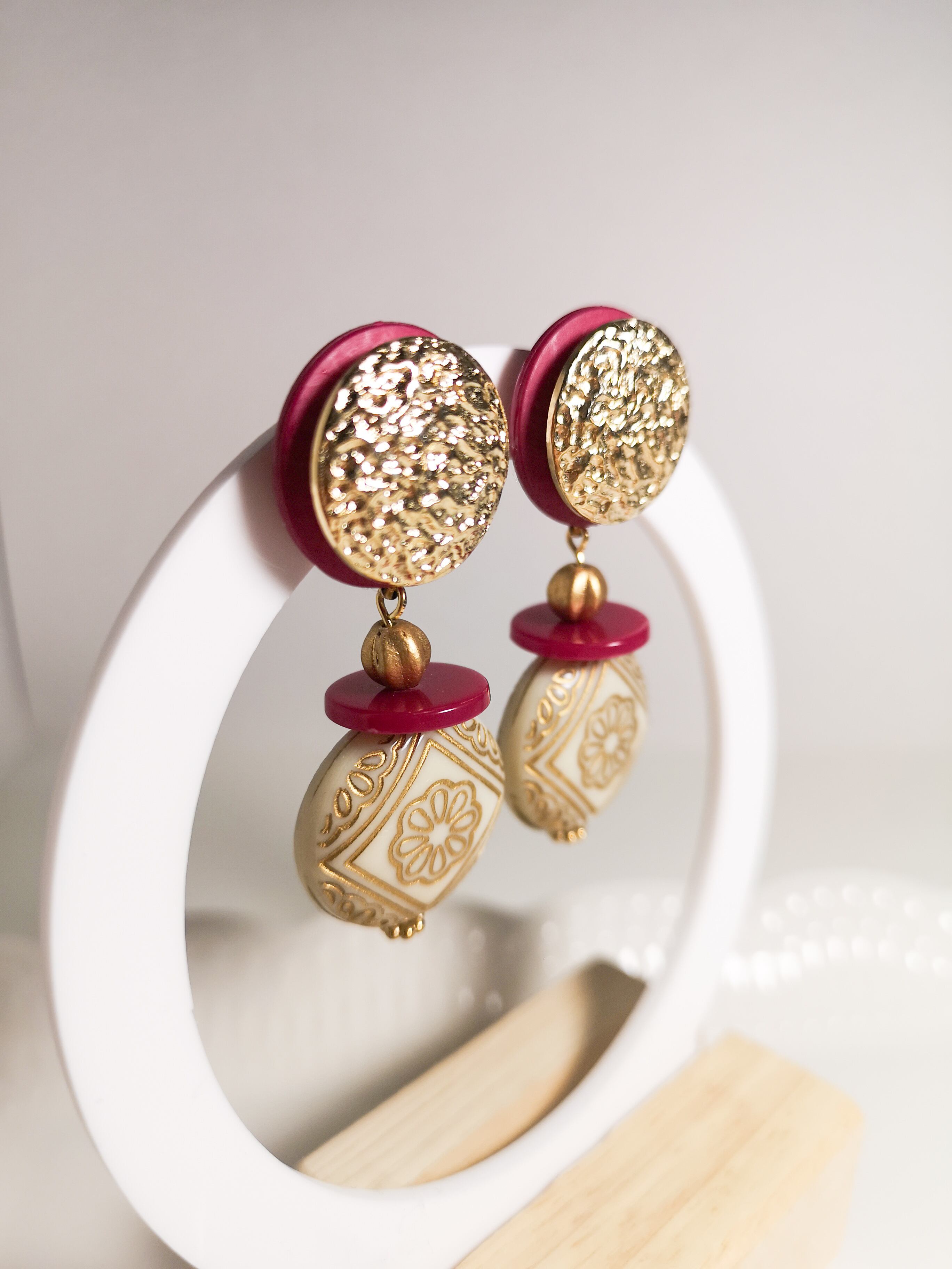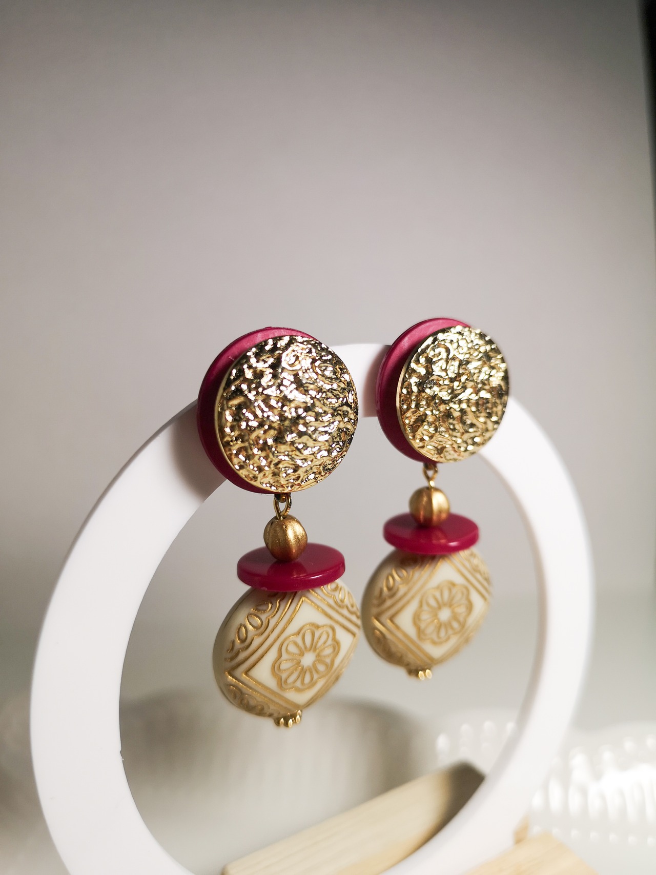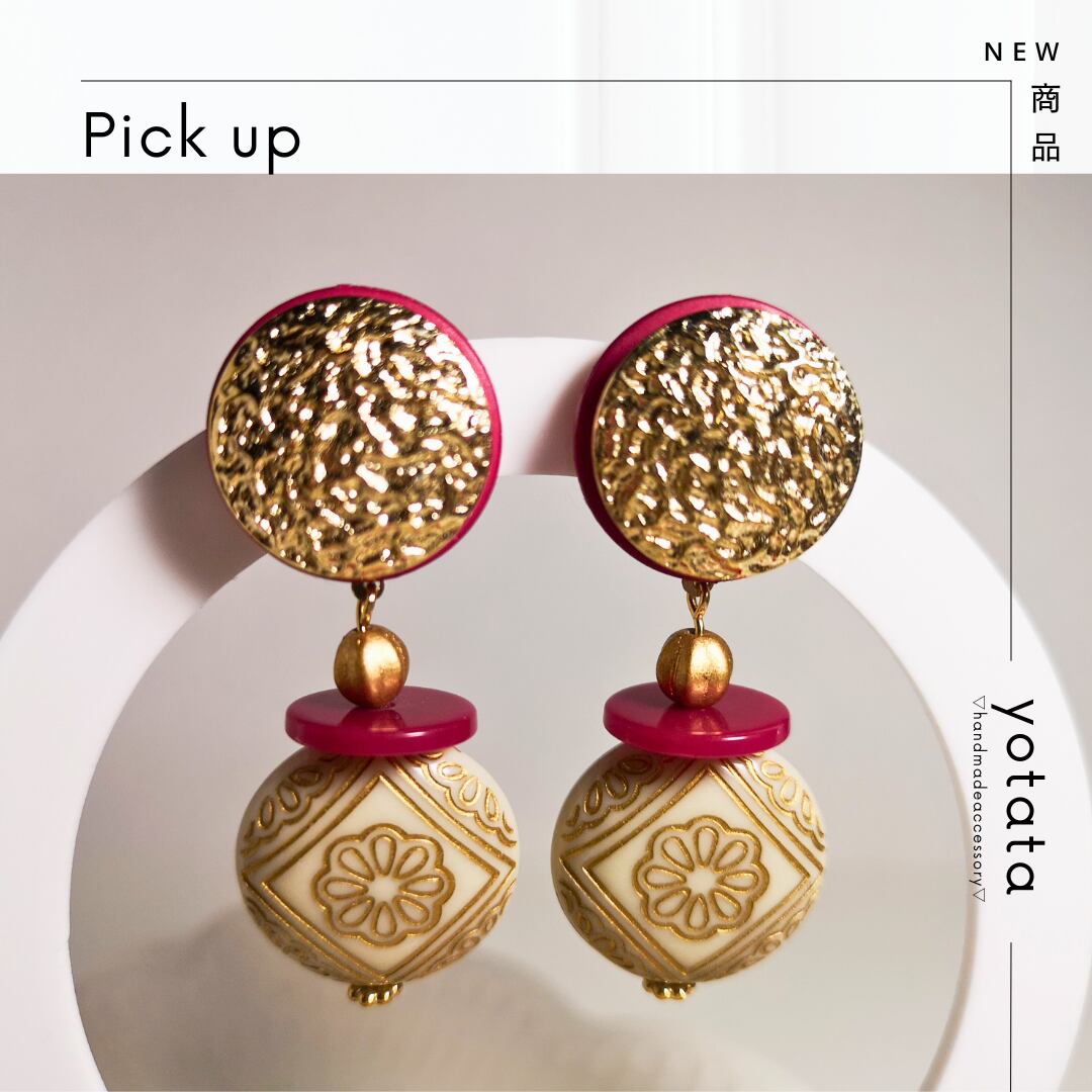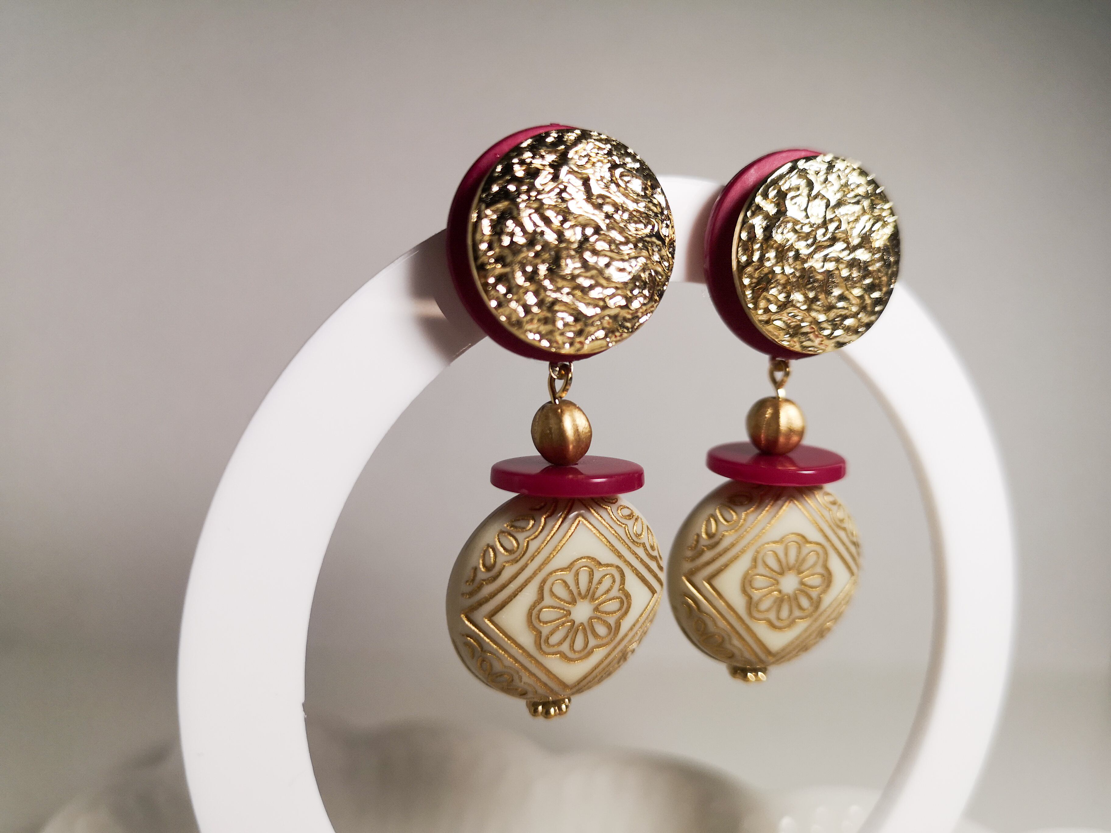 古き良き時代の香り漂うヴィンテージボタンが、耳元で華やかさを演出します。