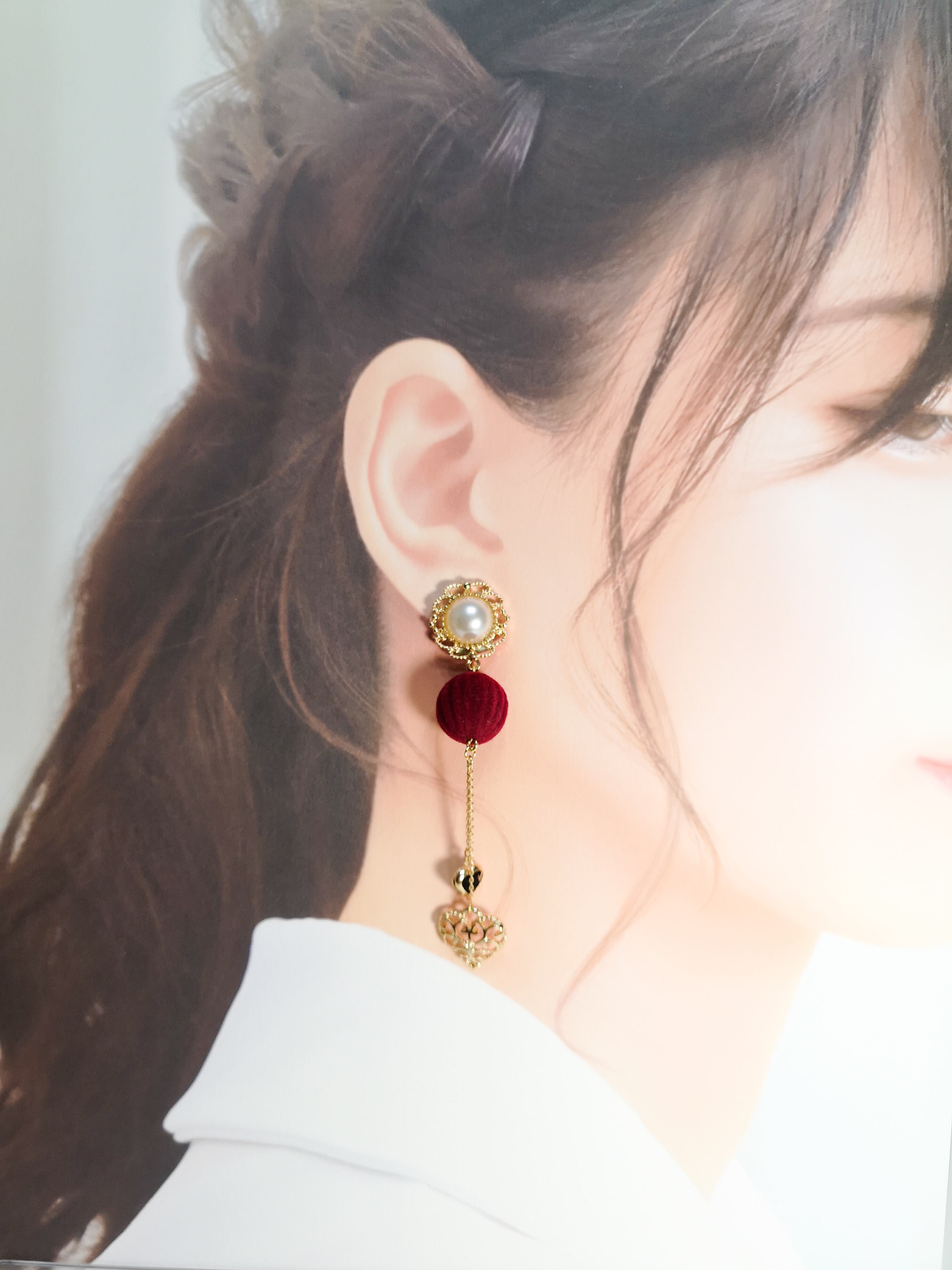 フロッキー素材の柔らかな質感が、耳元を優しく彩り、愛らしさとエレガンスを兼ね備えています。