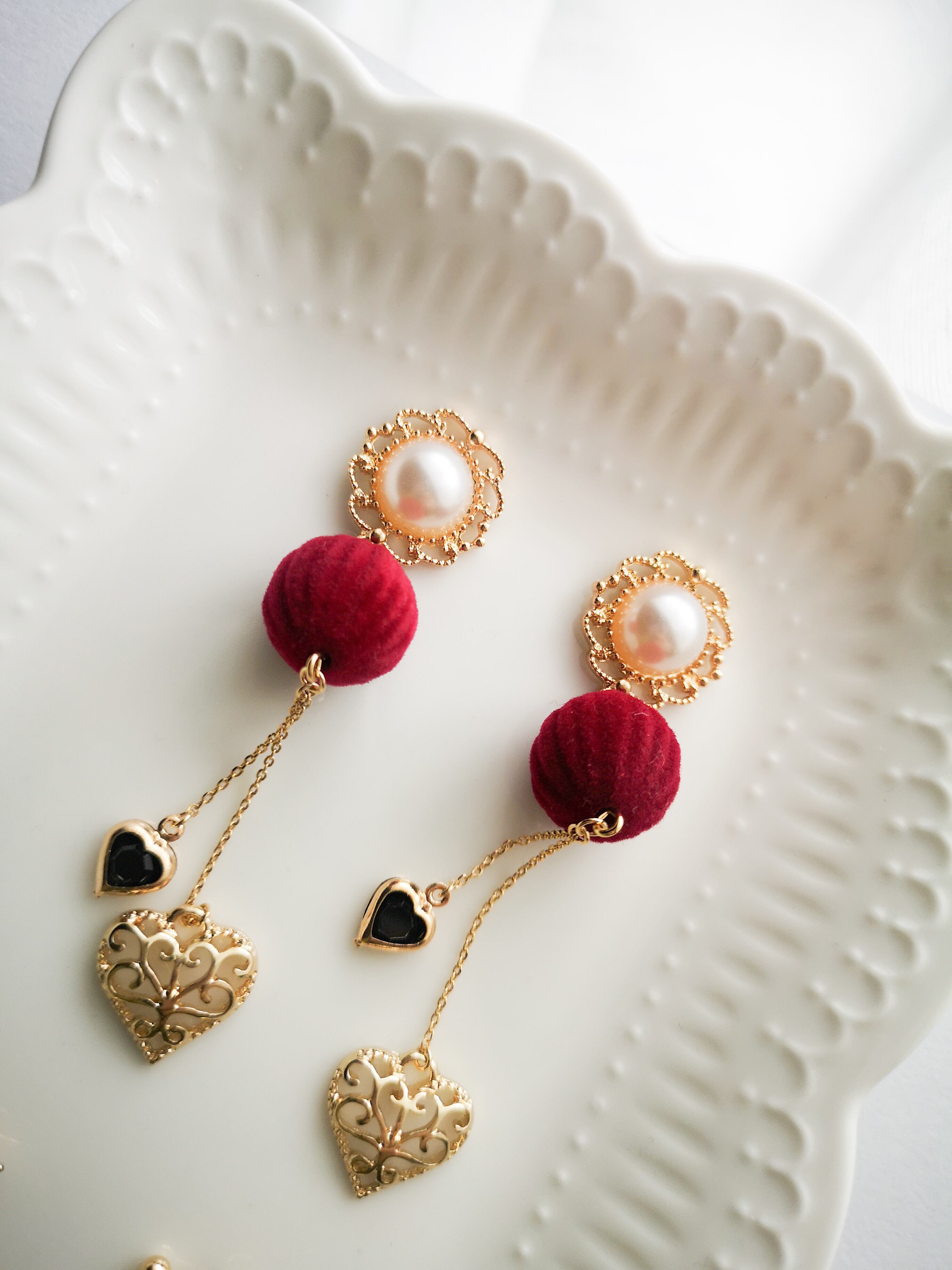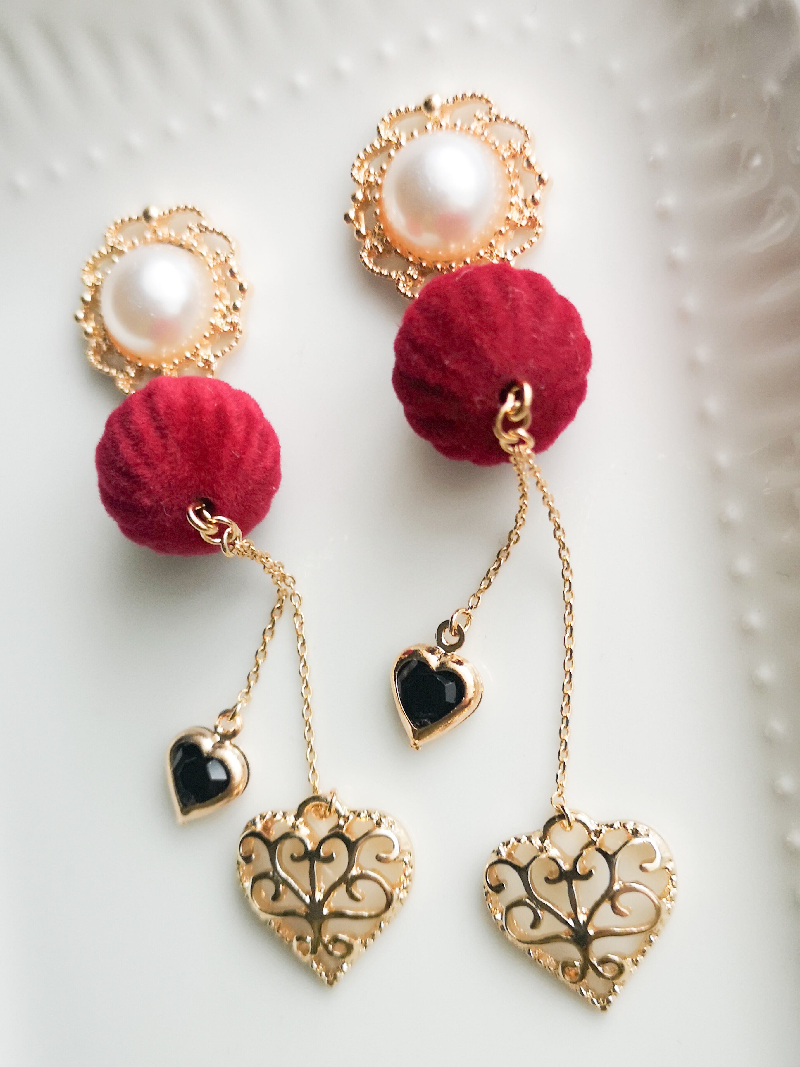 クラシックなハート形のヴィンテージチャームを使用した、個性的で華やかなアクセサリーです❁︎