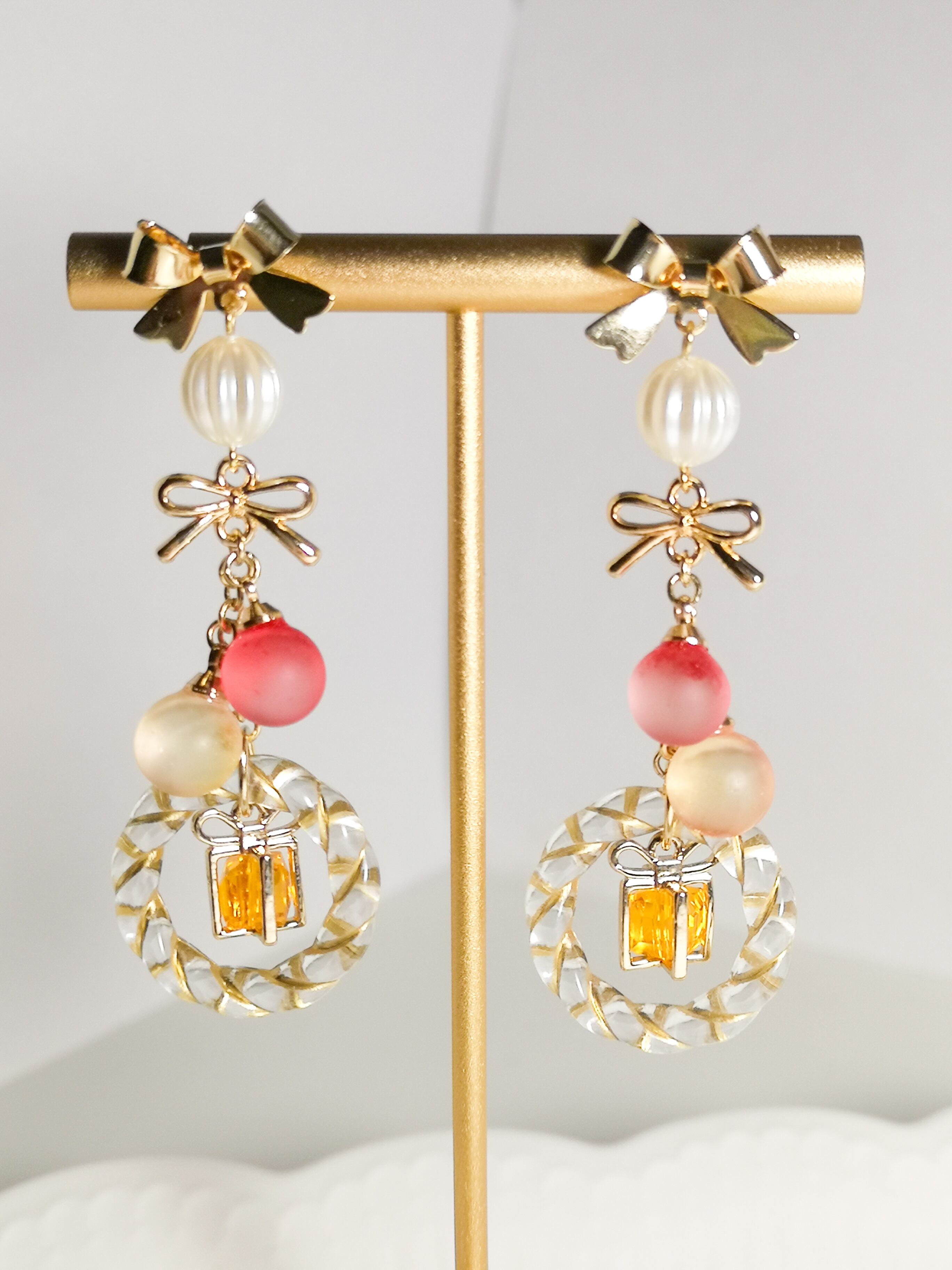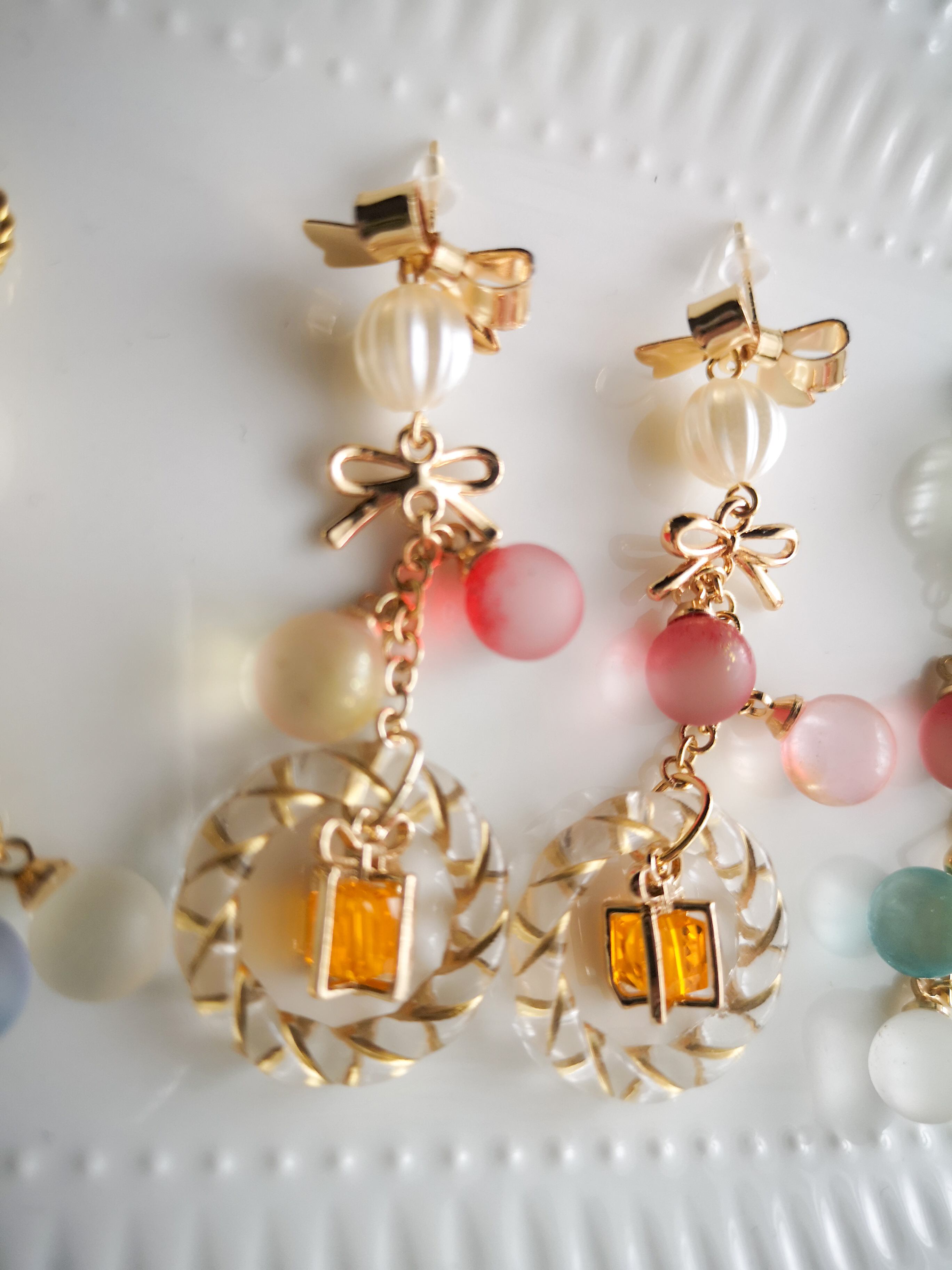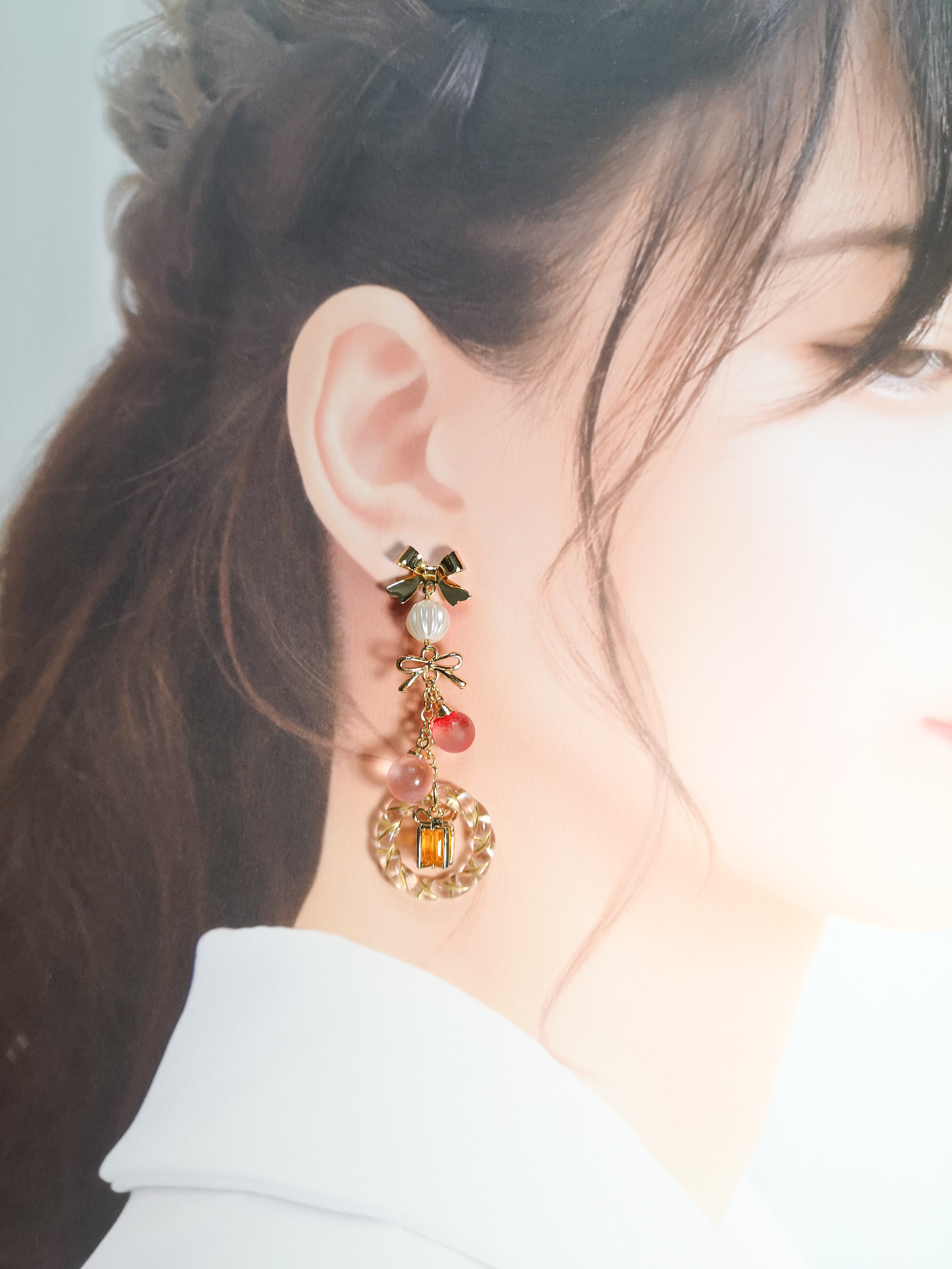 カラフルなオーナメントと可愛らしいリボンの組み合わせ、プレゼントBOXのモチーフをデザインした特別なアクセサリーです❁︎