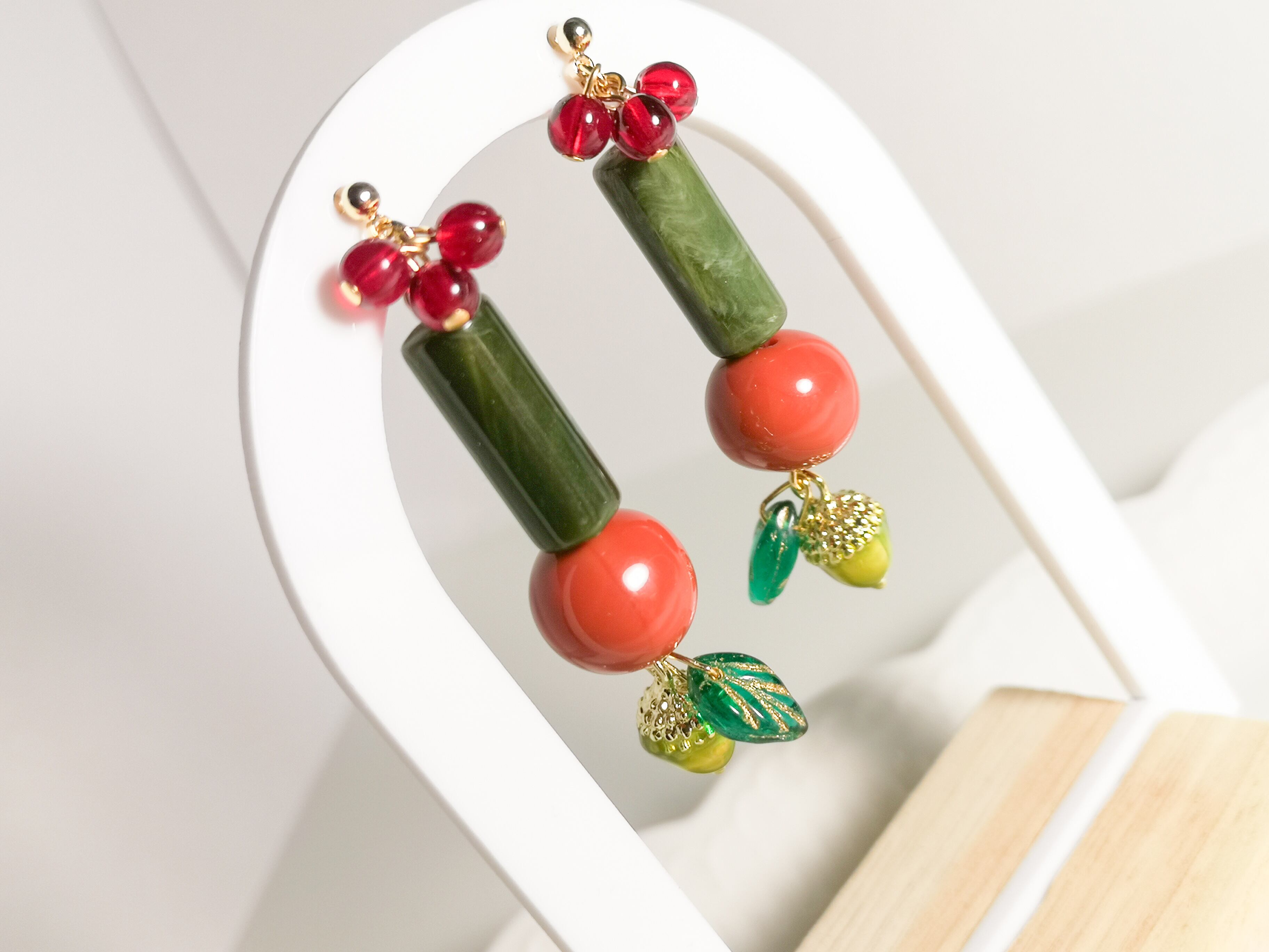 甘酸っぱい色合いが耳元を華やかに演出し、季節を感じられるデザインが魅力のアクセサリーです❁︎