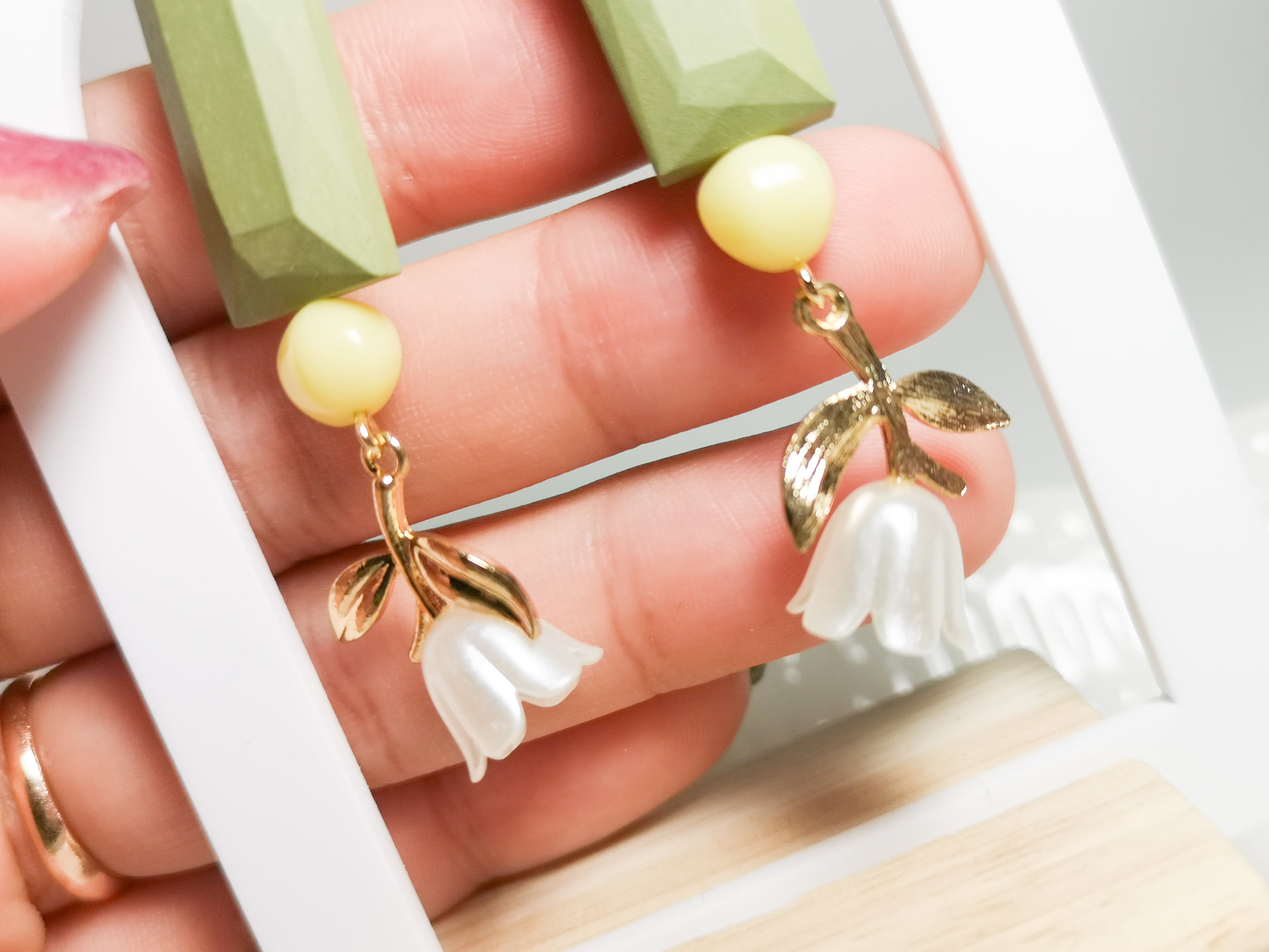 No.40 すずらんチャーム付きアンティークグリーンカラーピアス&イヤリング