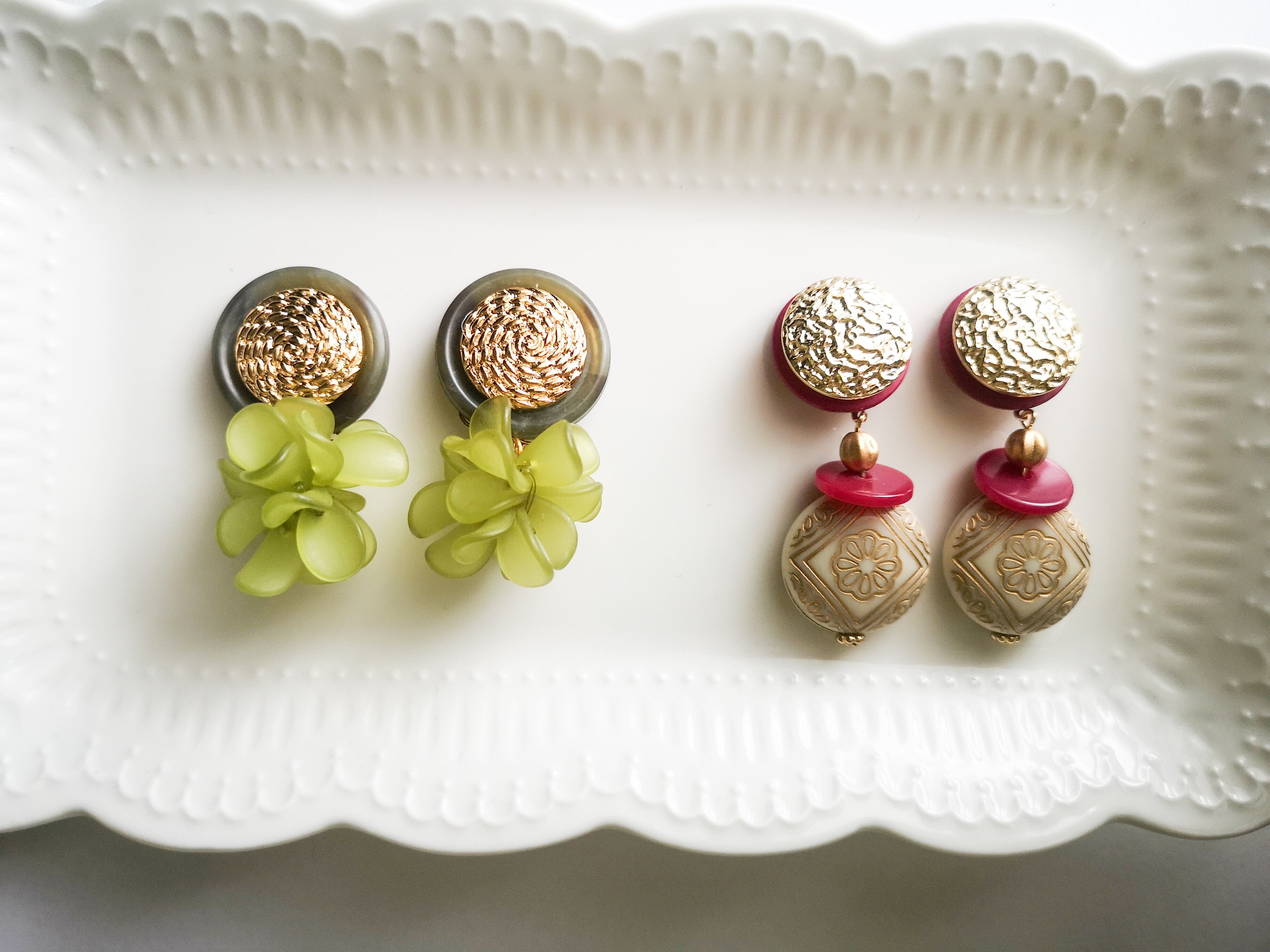 立体的なグリーンのお花が耳元を華やかに彩り、大ぶりで可愛らしいアクセサリーになりました。