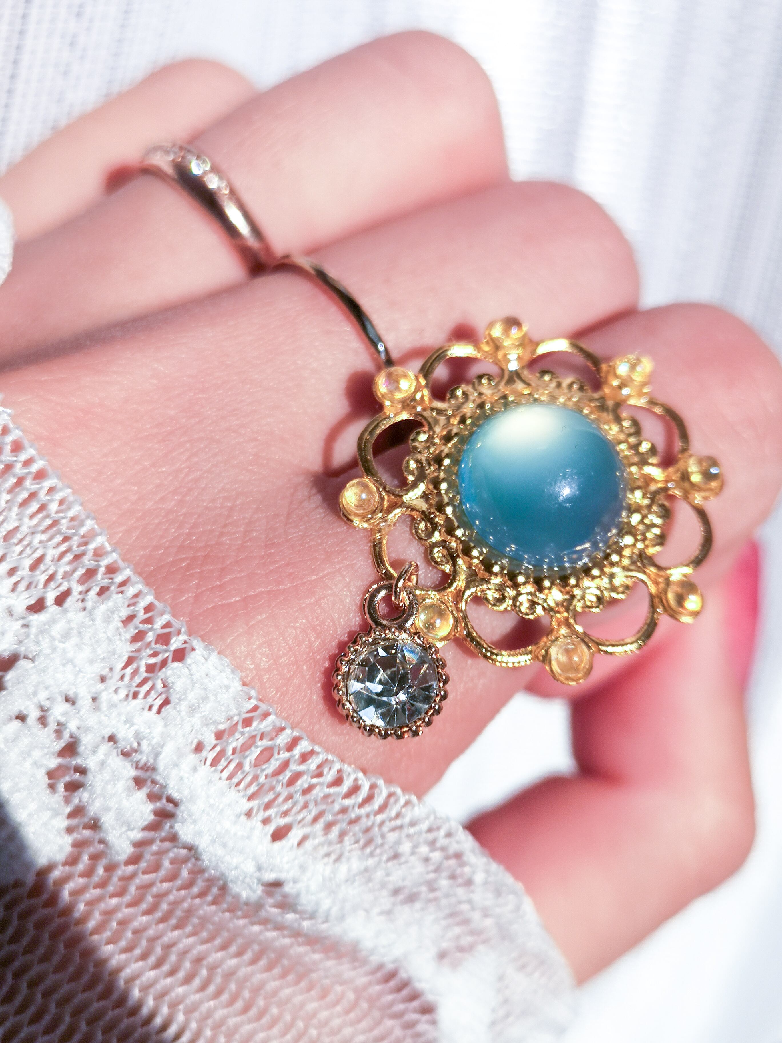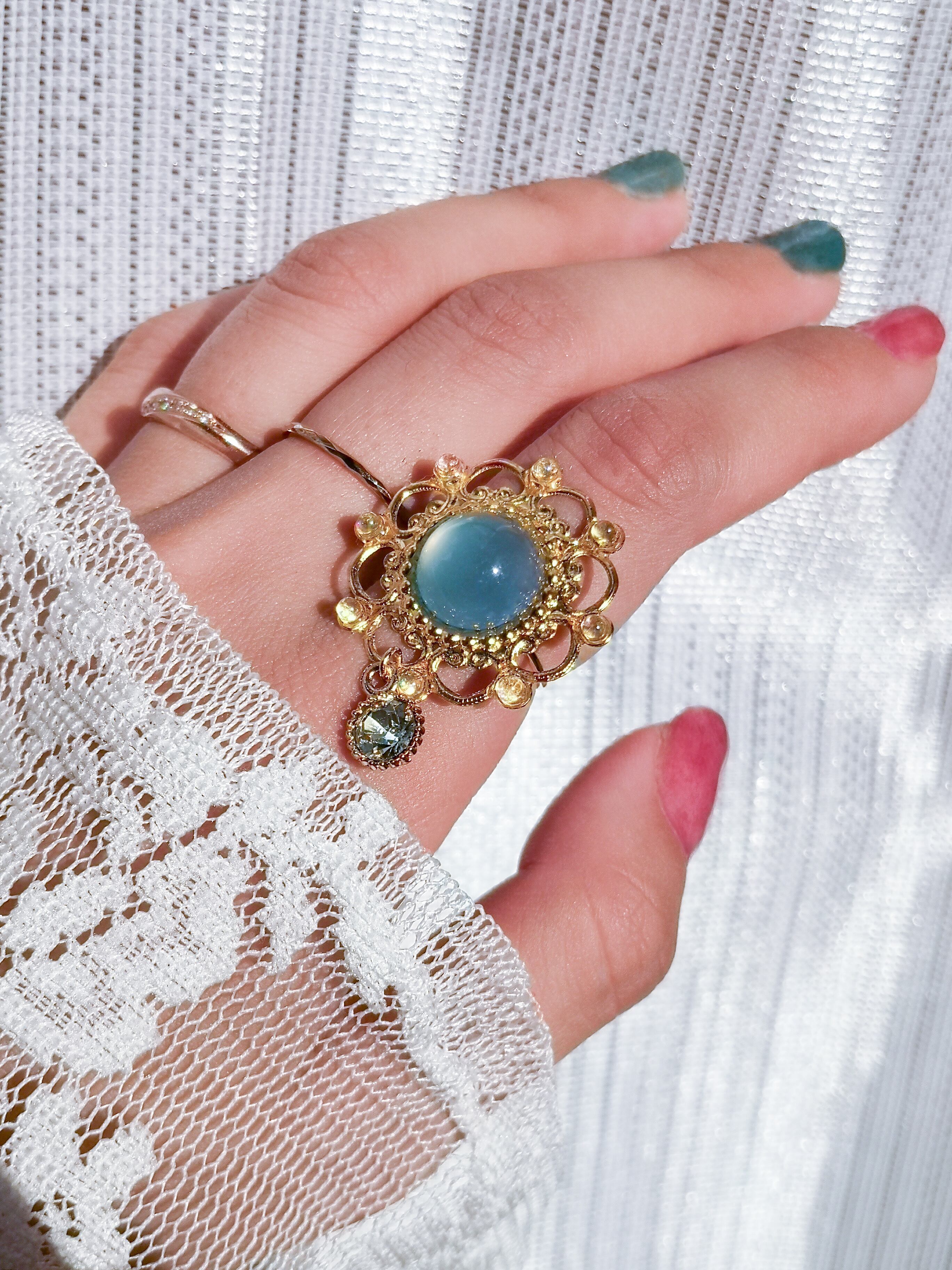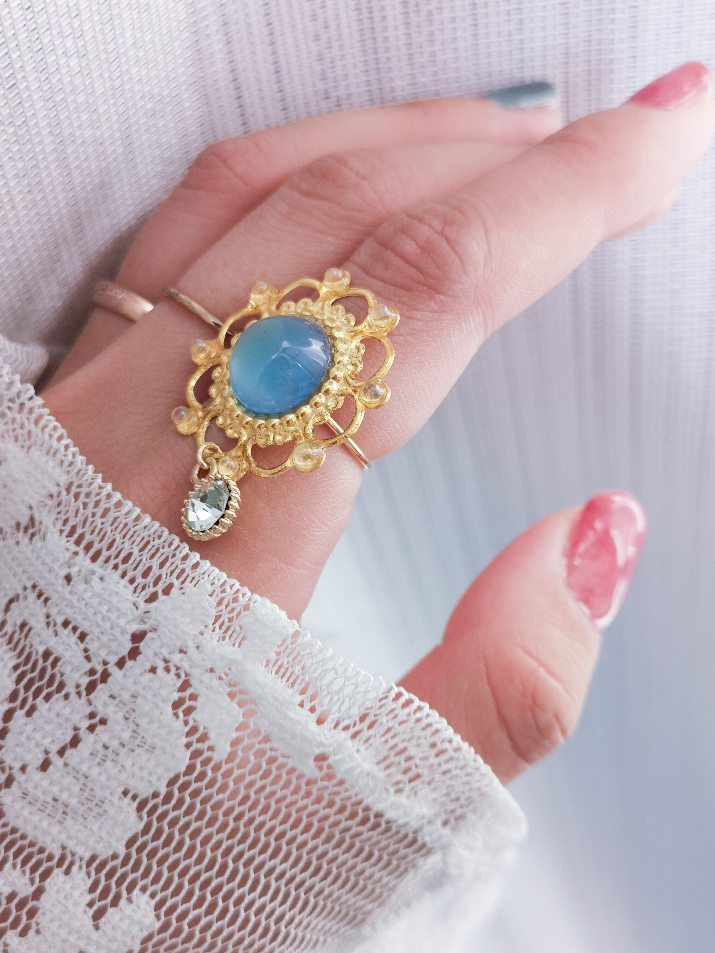 ⟬ 幻想的な輝きのオーロラブルー・アンティークリング ⟭