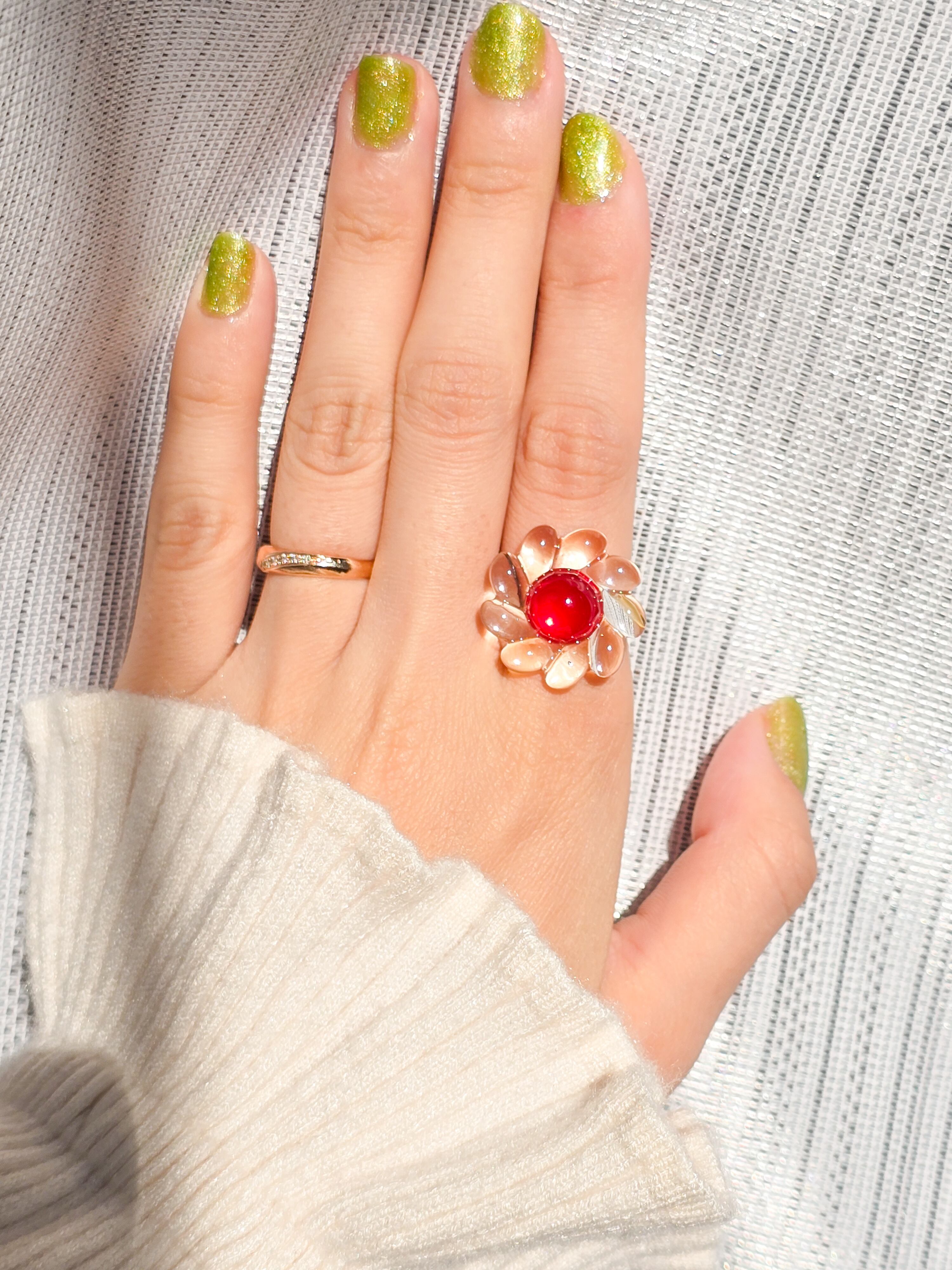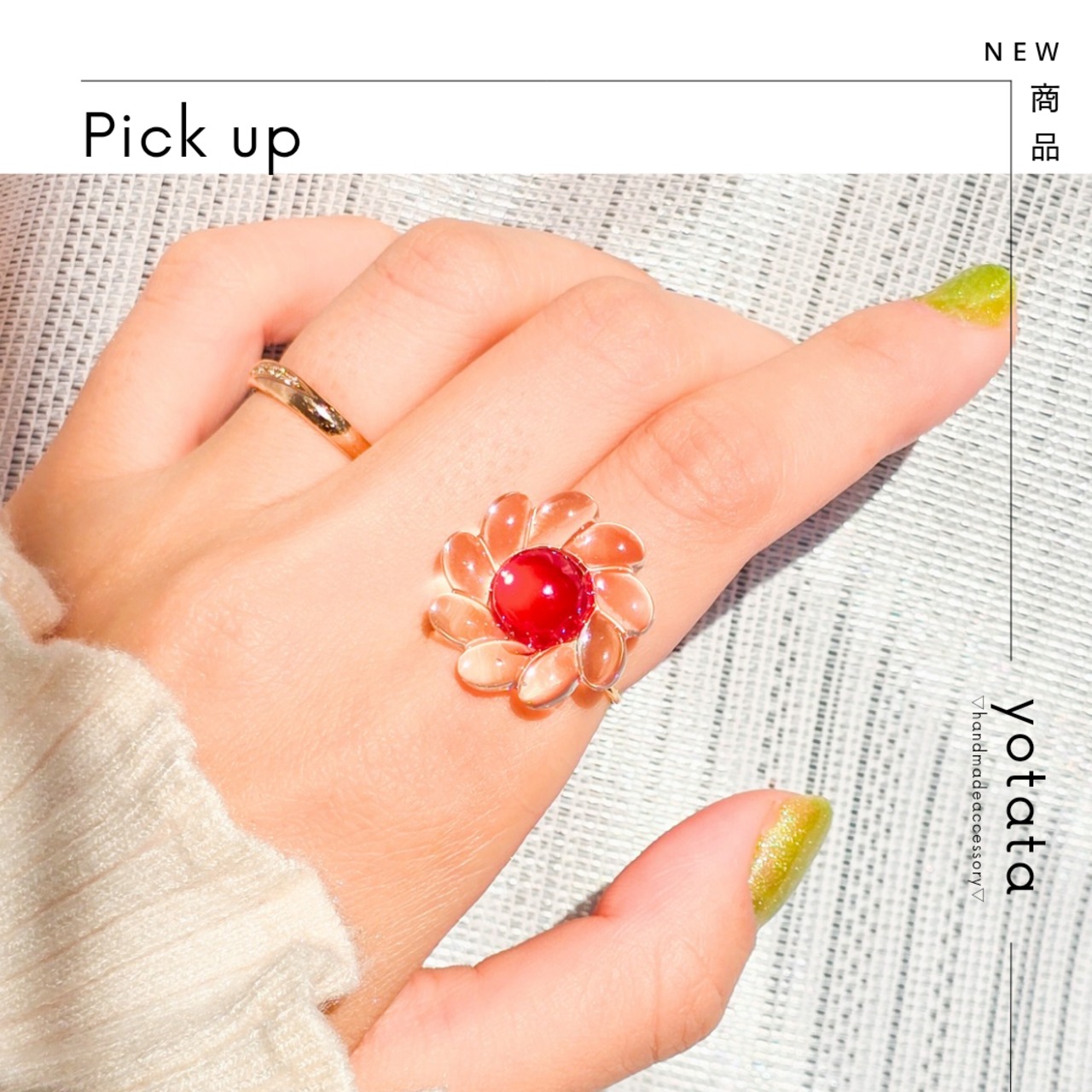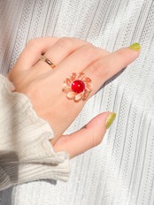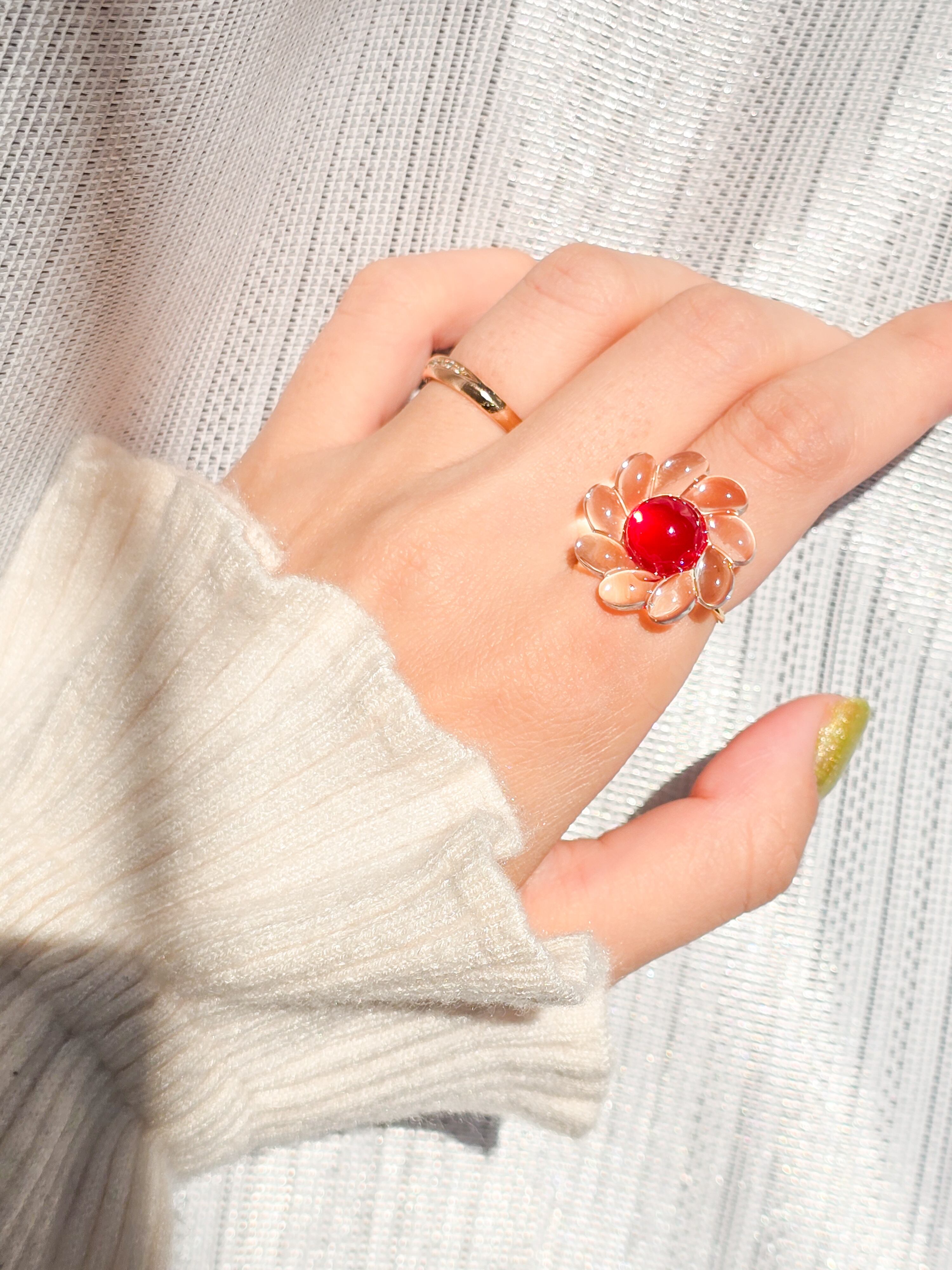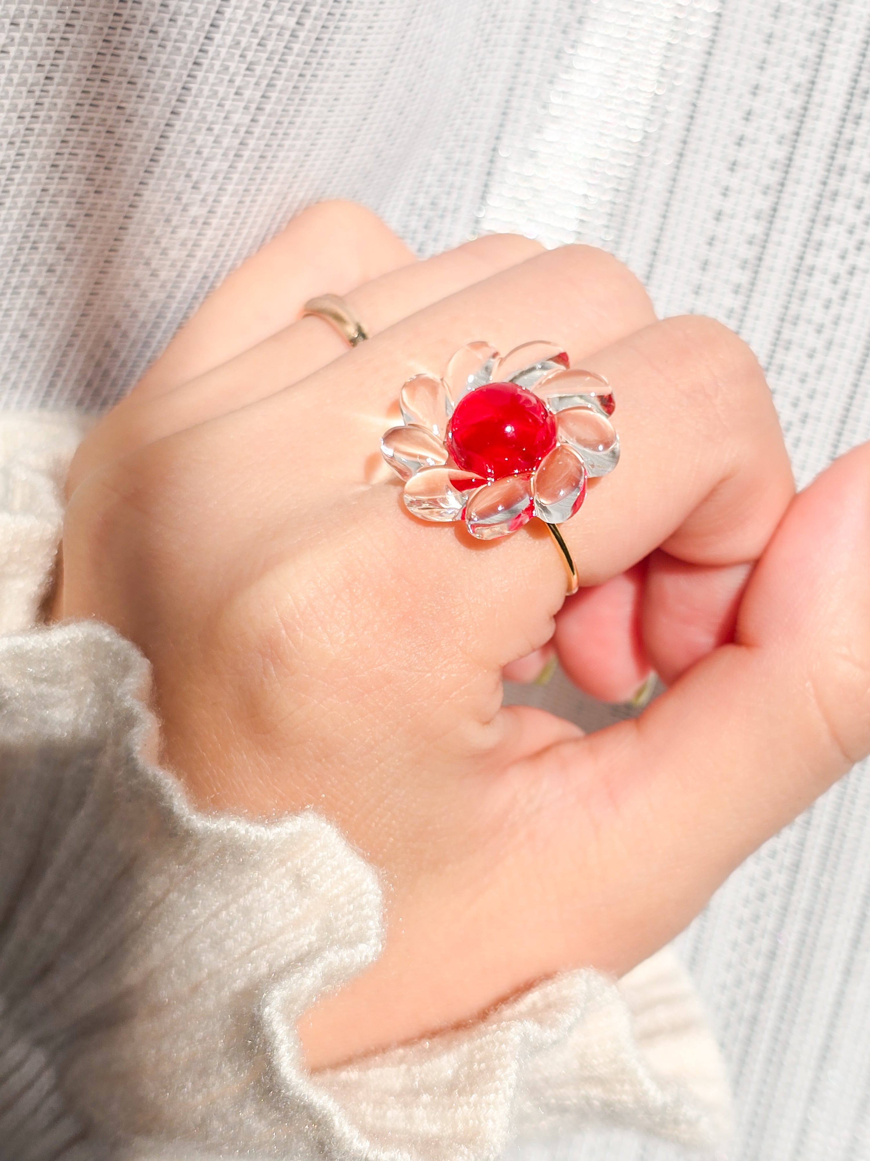 ⟬ レトロなチェリーレッドのお花のリングで華やかに! ⟭