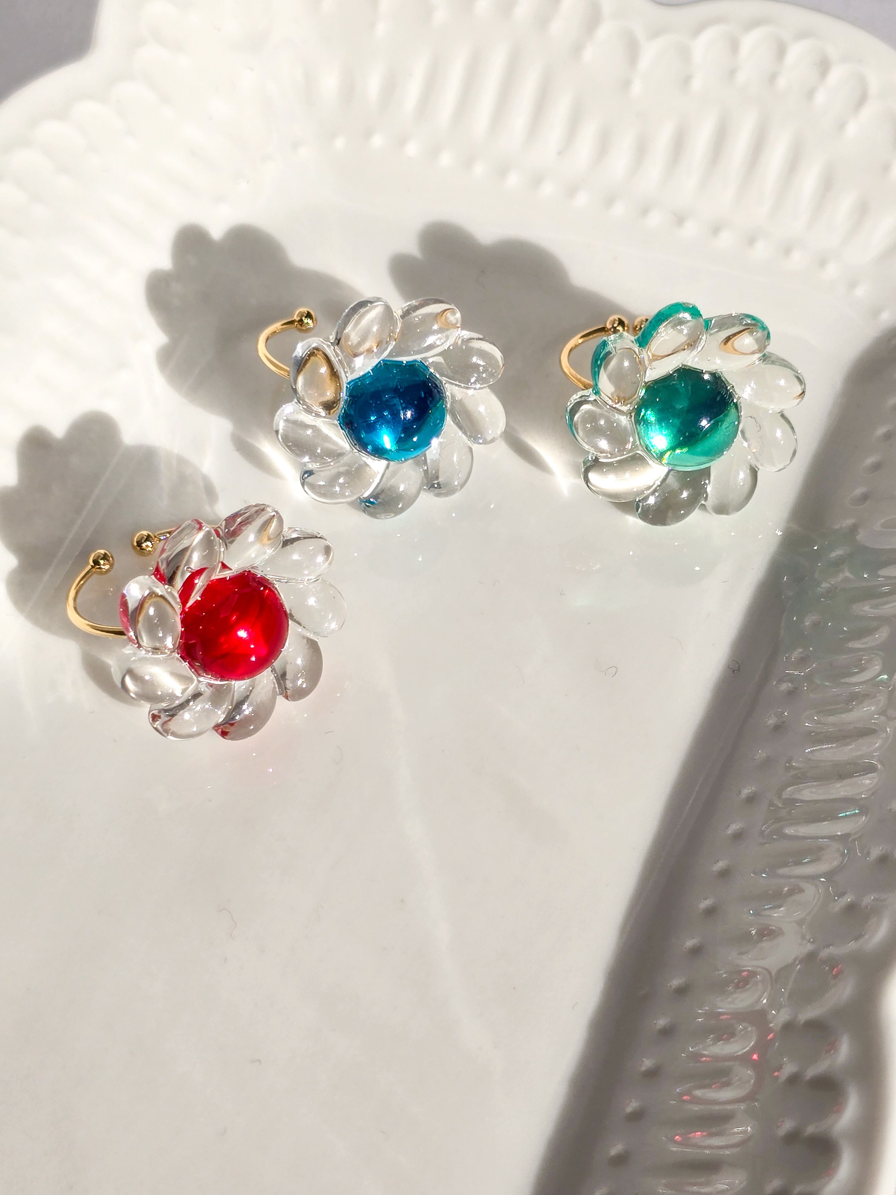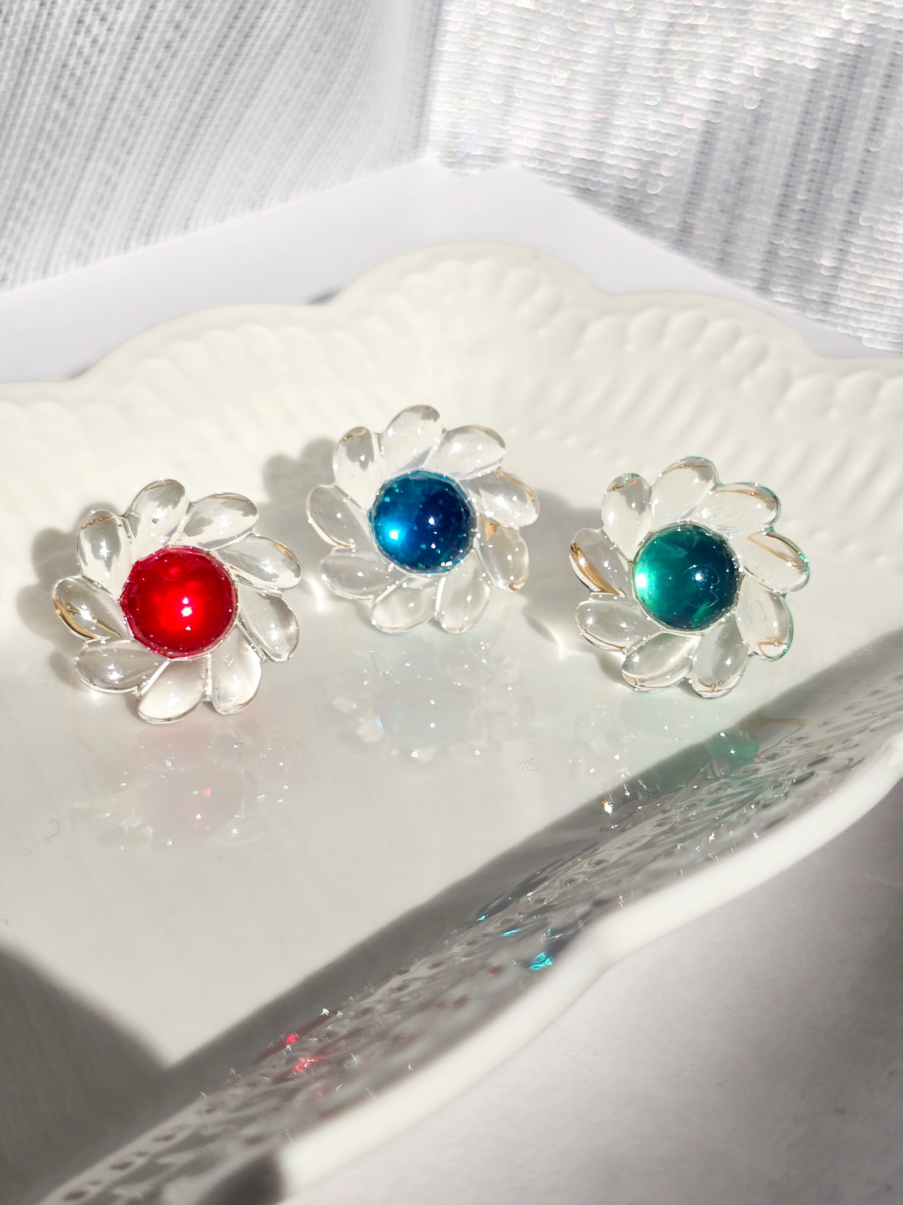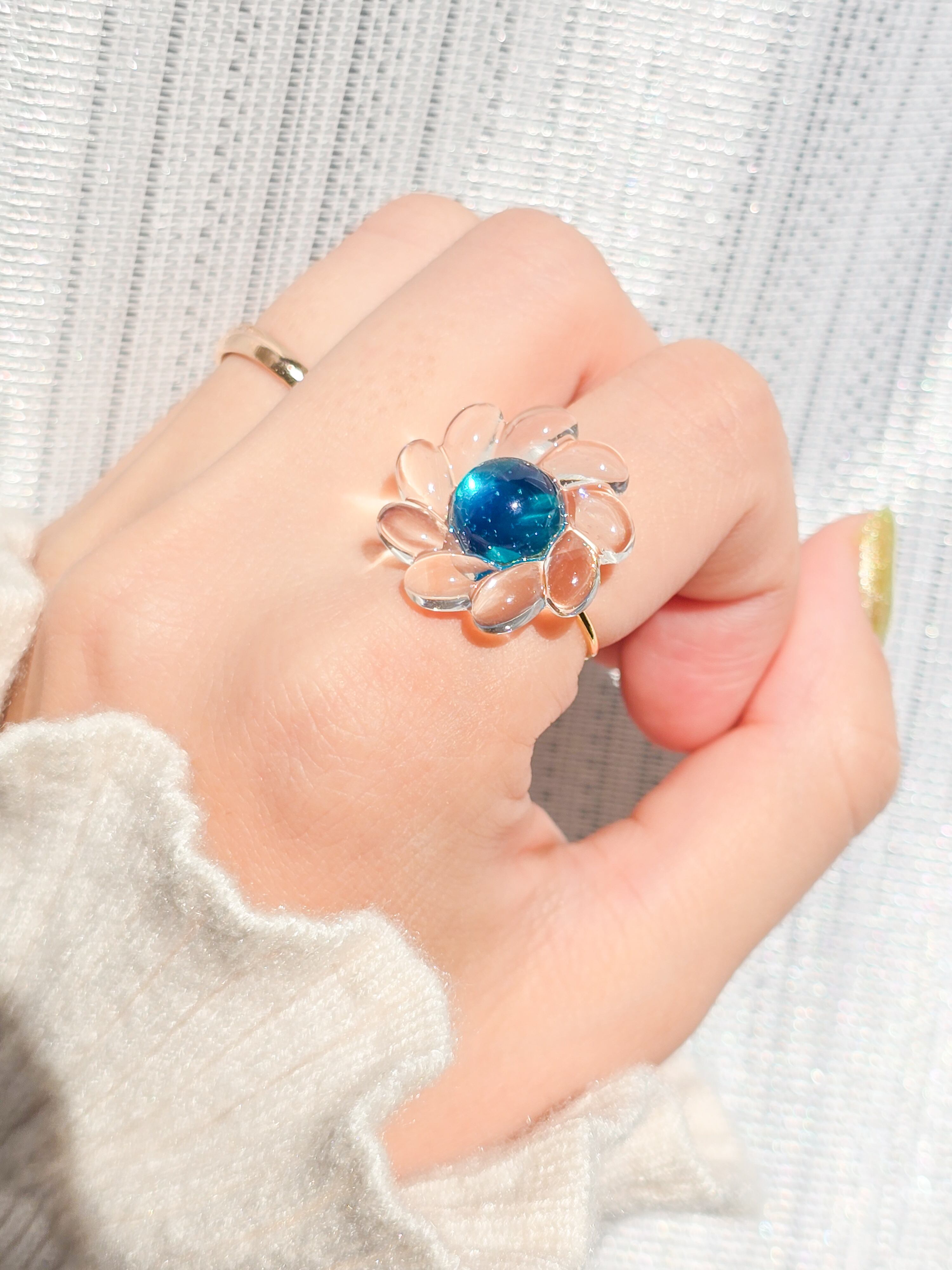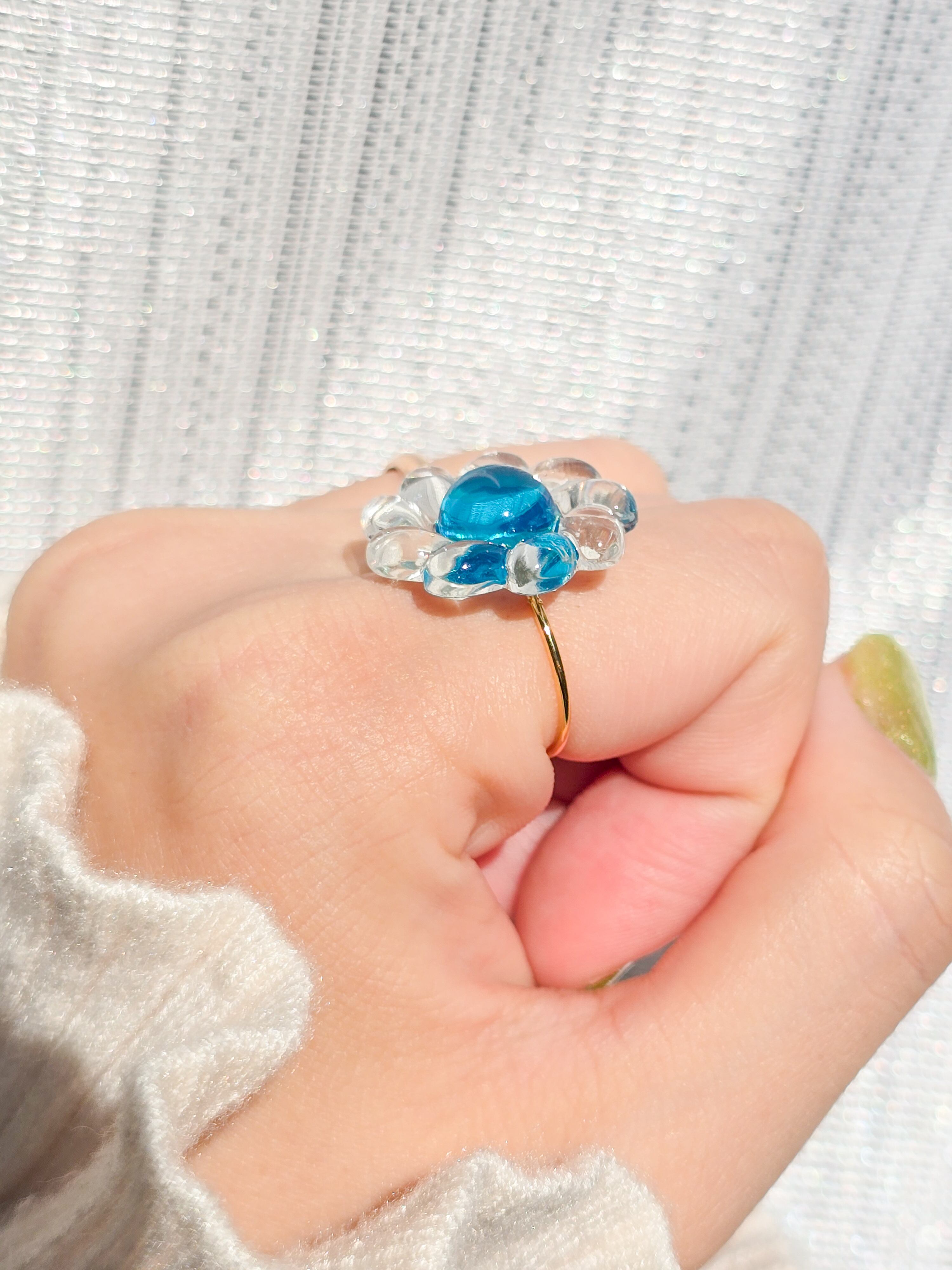 ⟬ レトロなクリアブルーのお花のリングで華やかに! ⟭