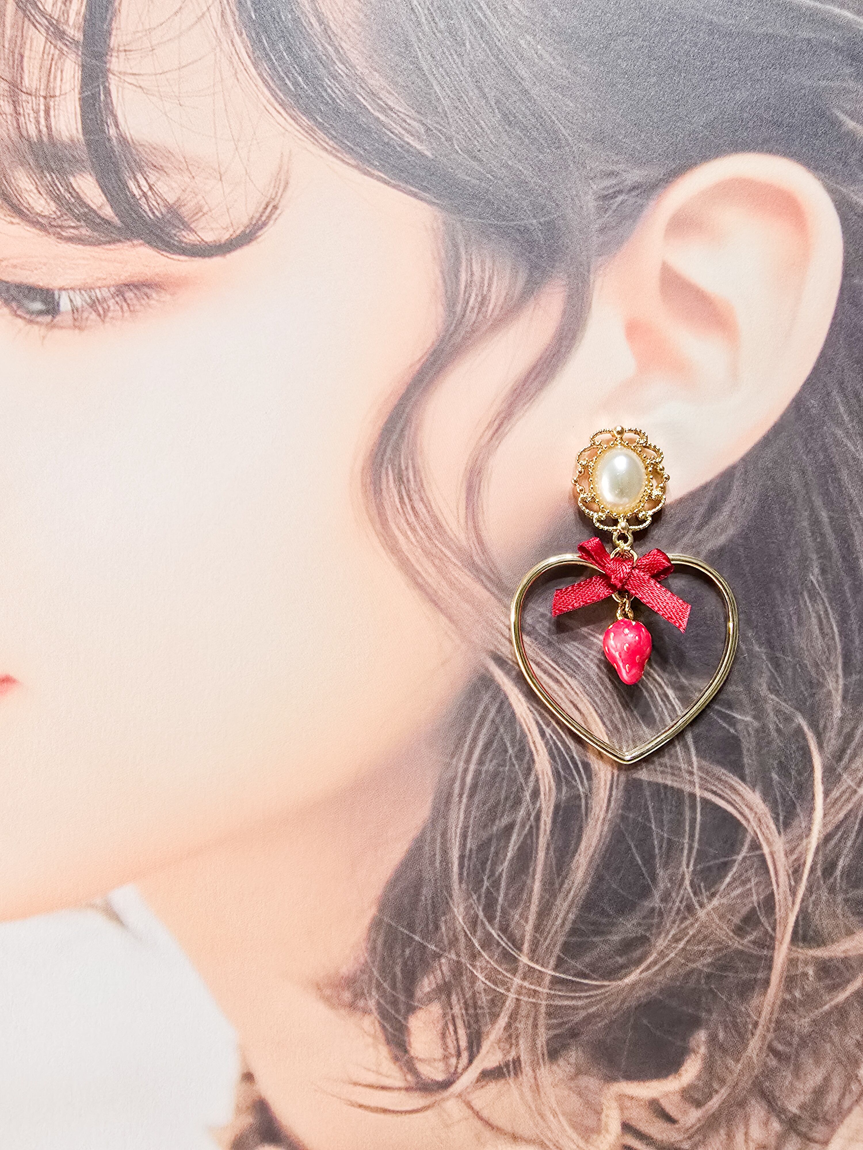 ⟬ いちご×ハート×リボンの乙女レトロピアス&イヤリング ⟭