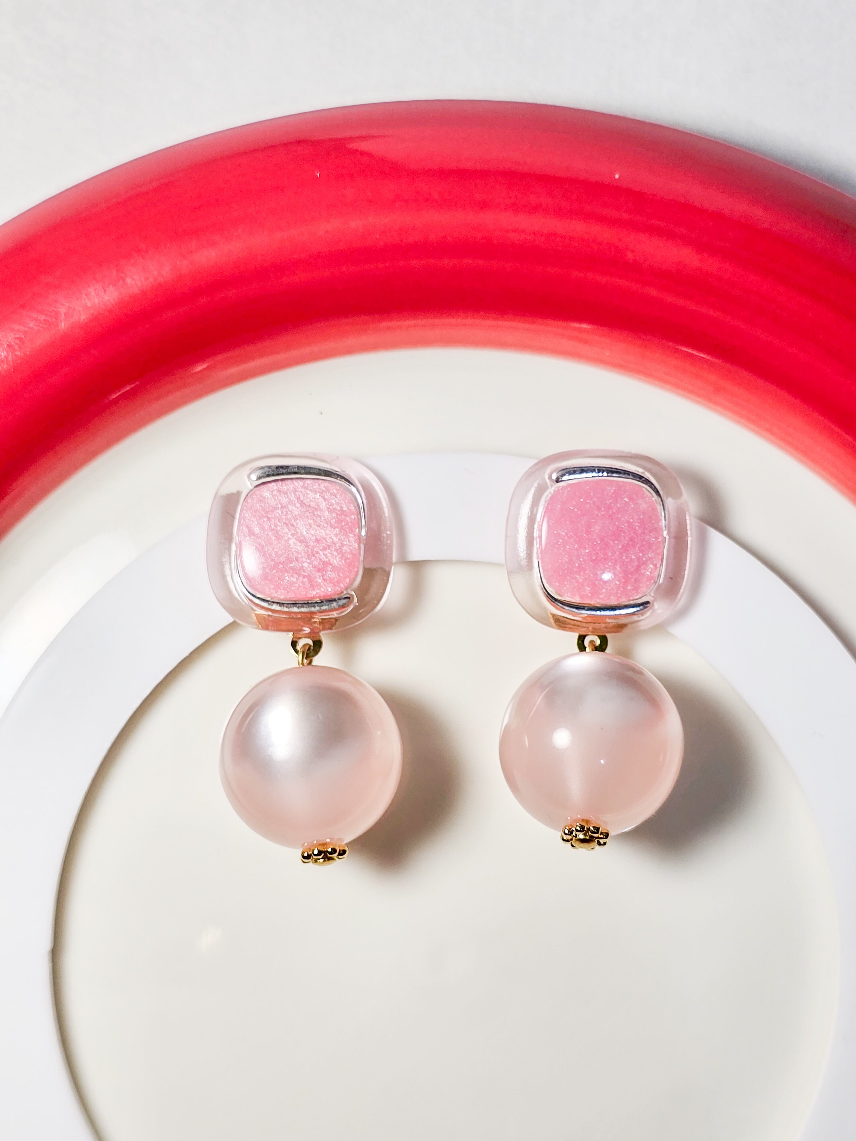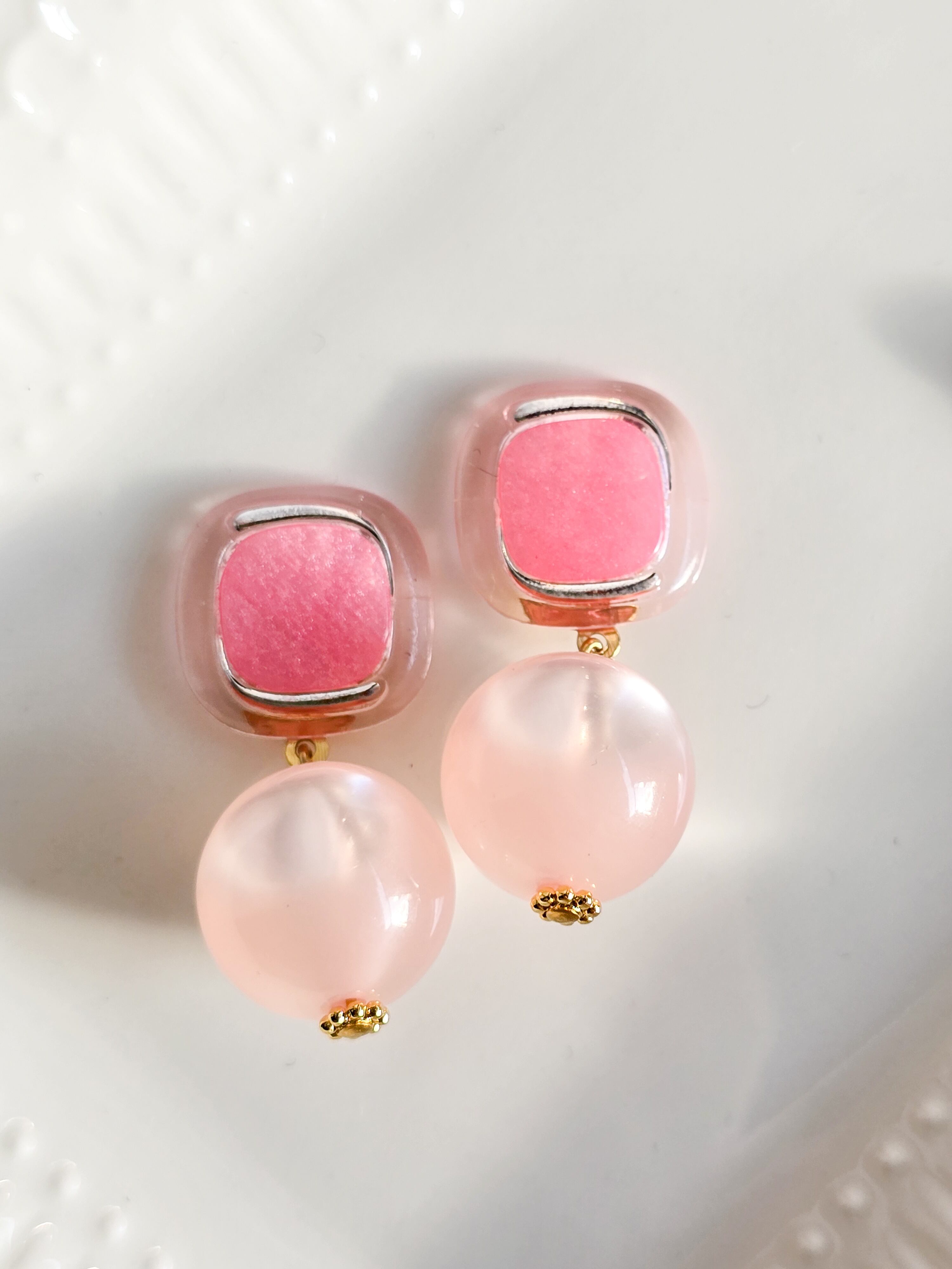 ⟬ レトロボタン×ポラリスのぷっくりピンクピアス&イヤリング ⟭