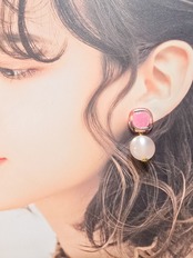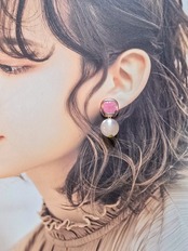 華やかなピンクのレトロボタンはぷっくりしたデザインがとっても可愛くて、耳元に可愛らしさとおしゃれをプラスします❁︎
