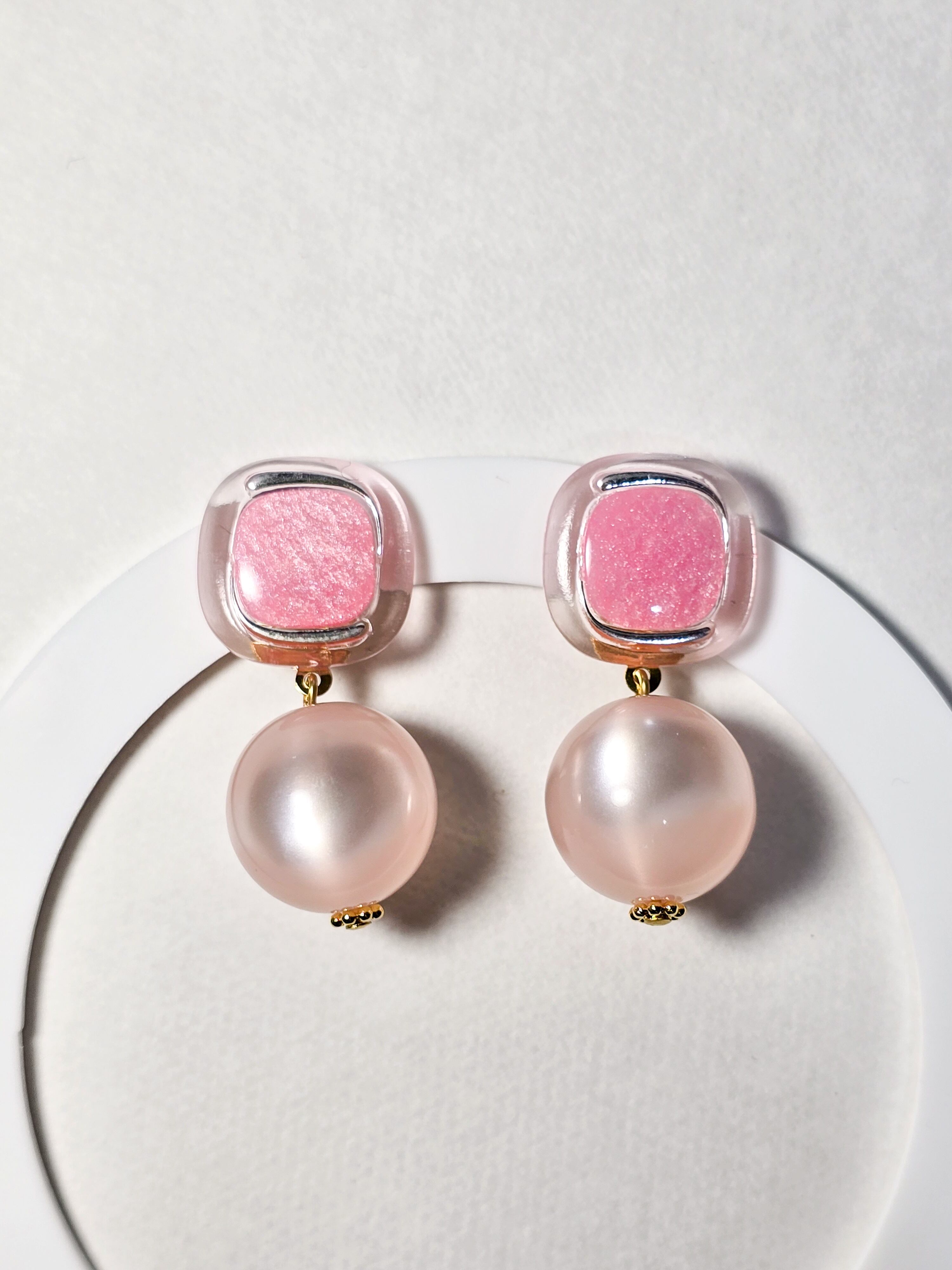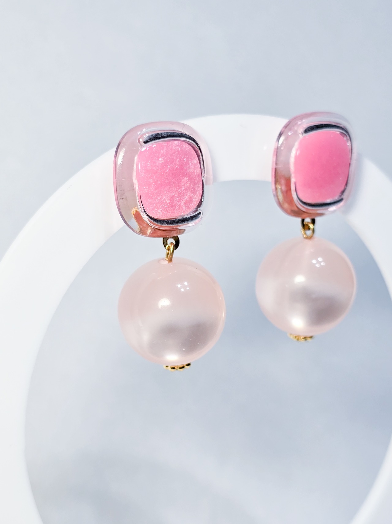 No.61 レトロボタン×ポラリスのぷっくりピンクピアス&イヤリング