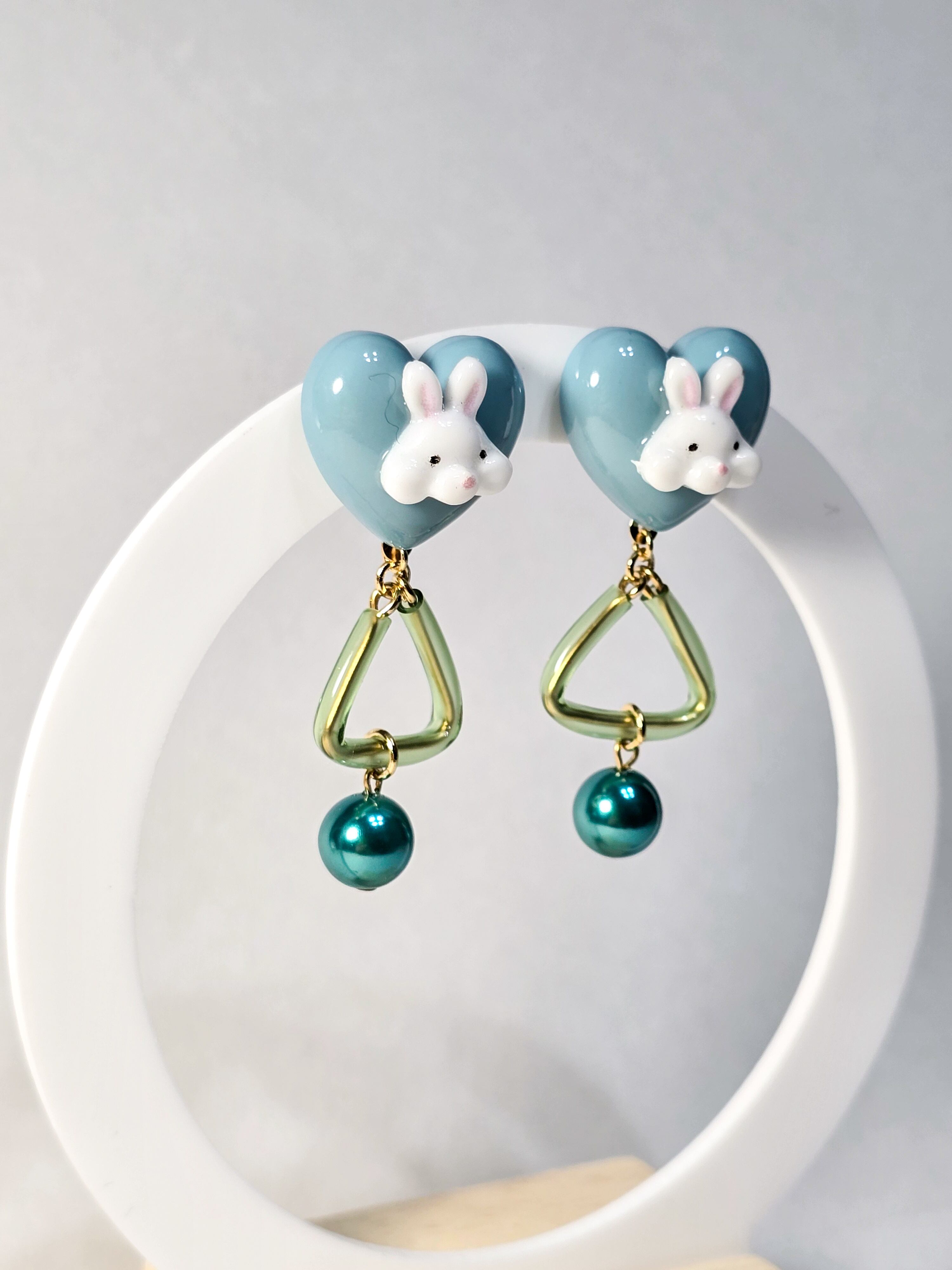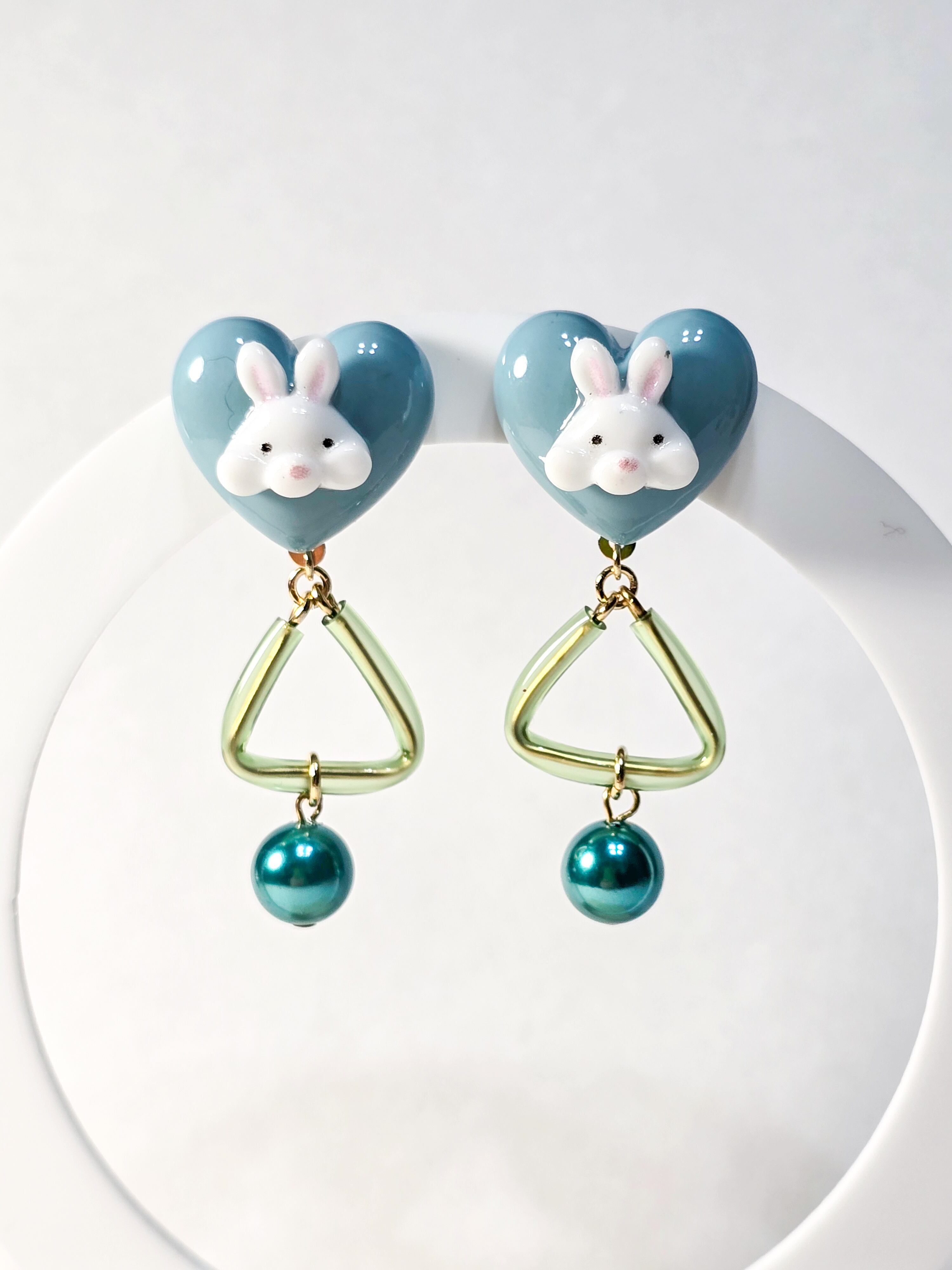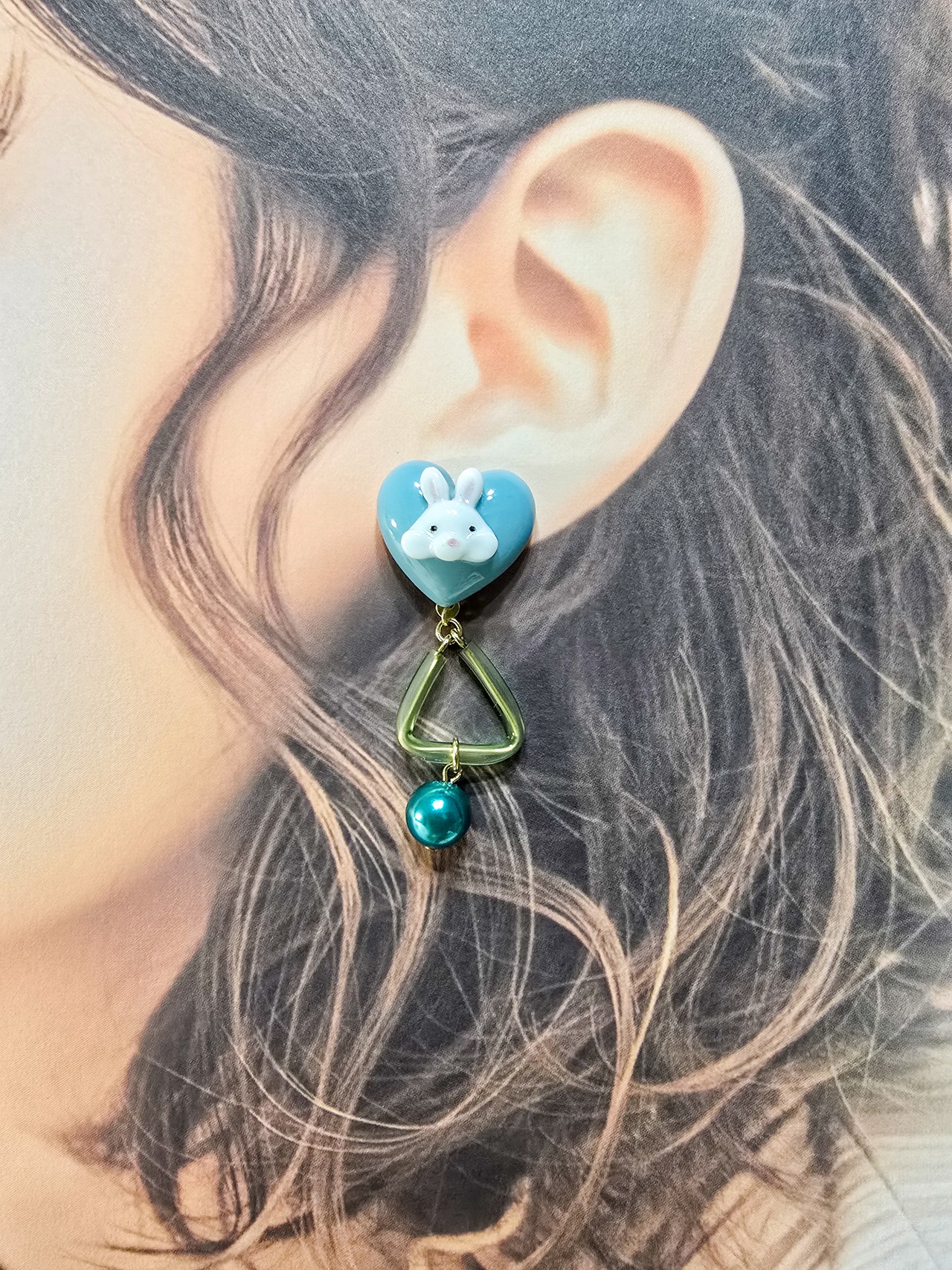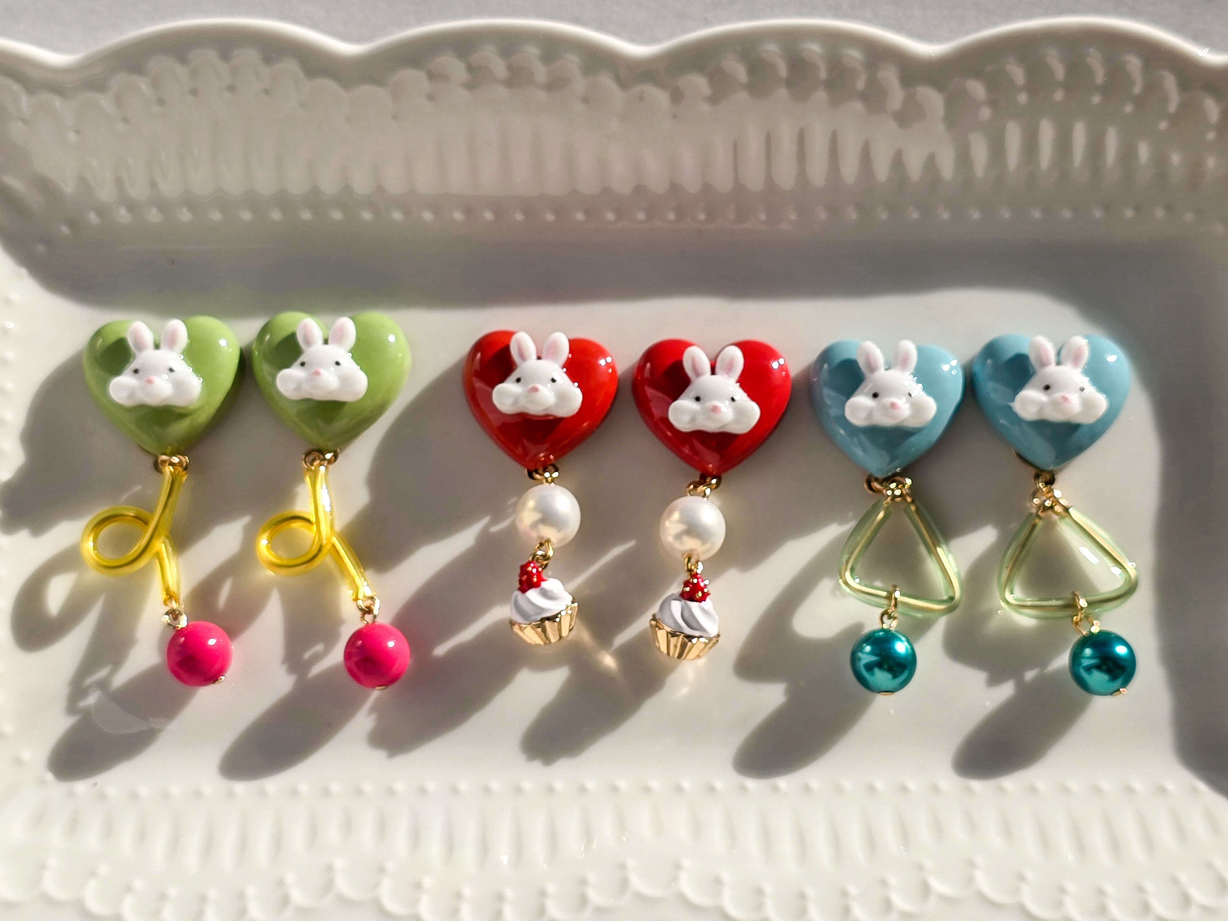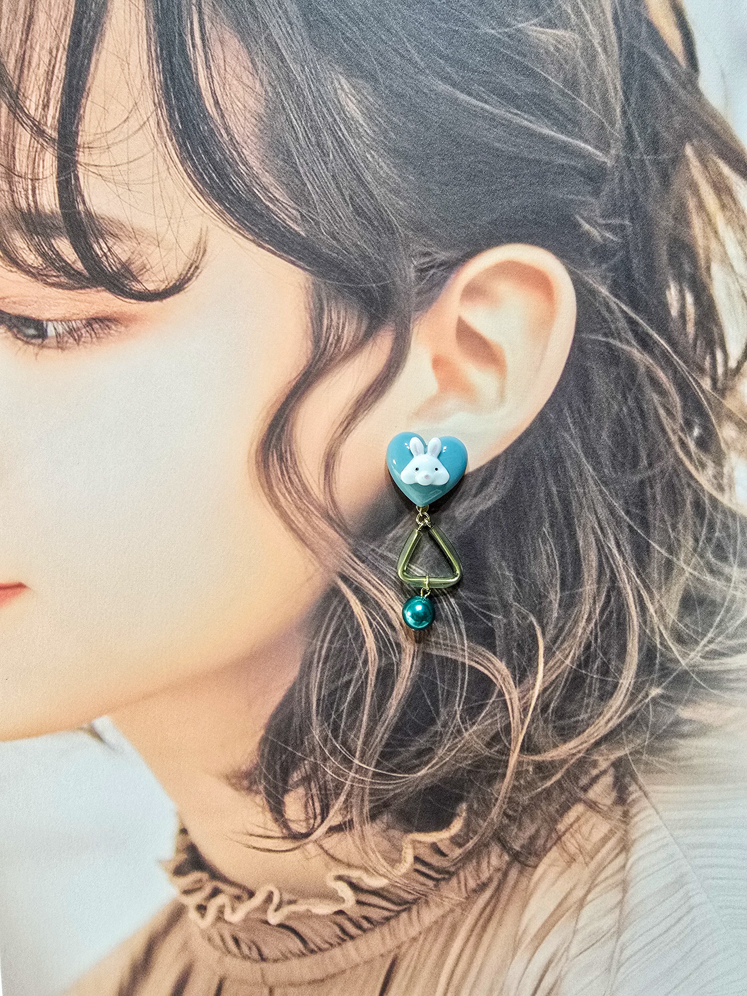 愛らしいうさぎちゃんがデザインされたハート型のピアス&イヤリングが、顔まわりに華やかさと遊び心を添えます❁︎