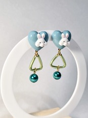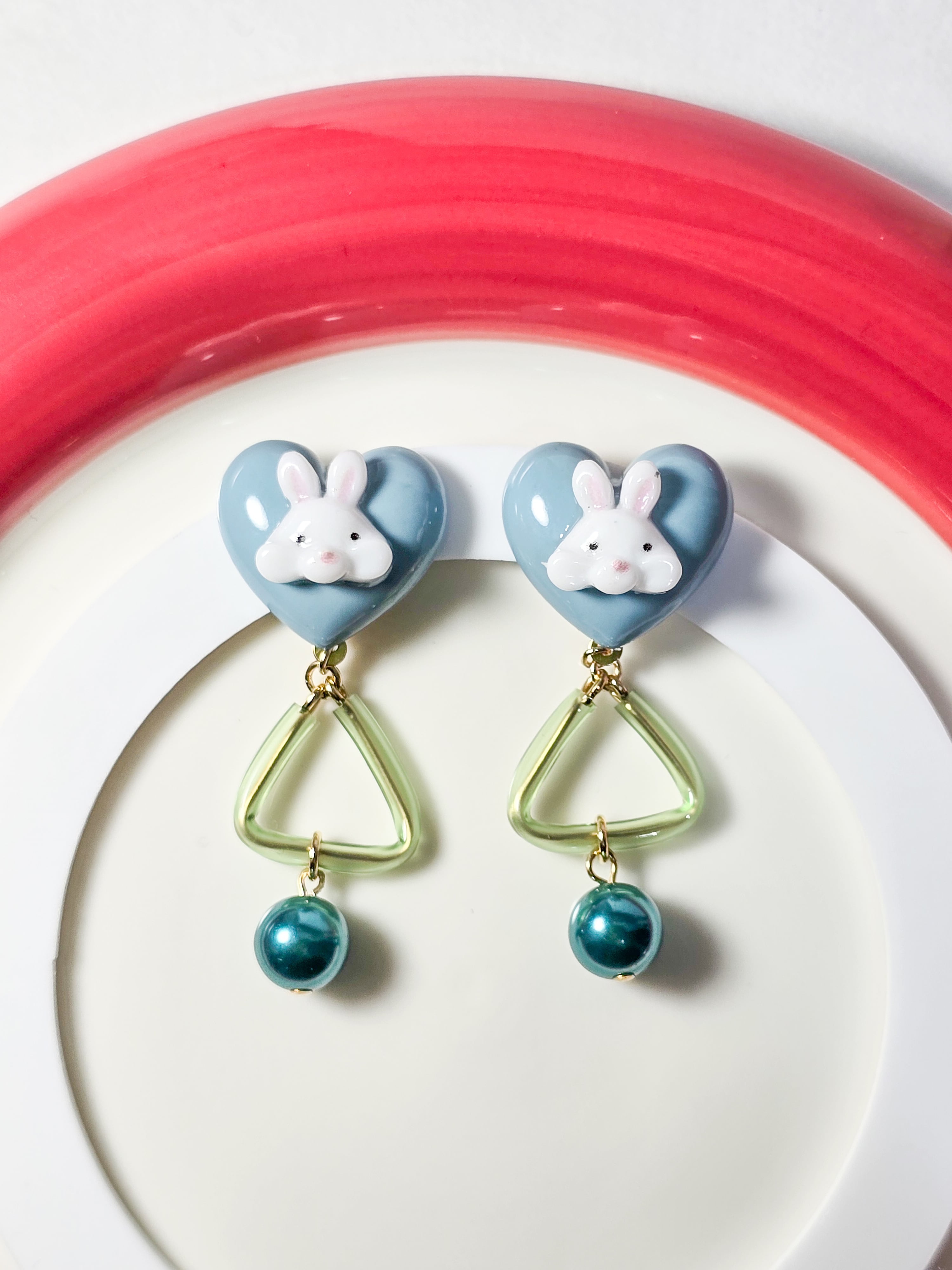 ⟬ うさぎちゃん(ブルー)ハートレトロポップピアス&イヤリング ⟭