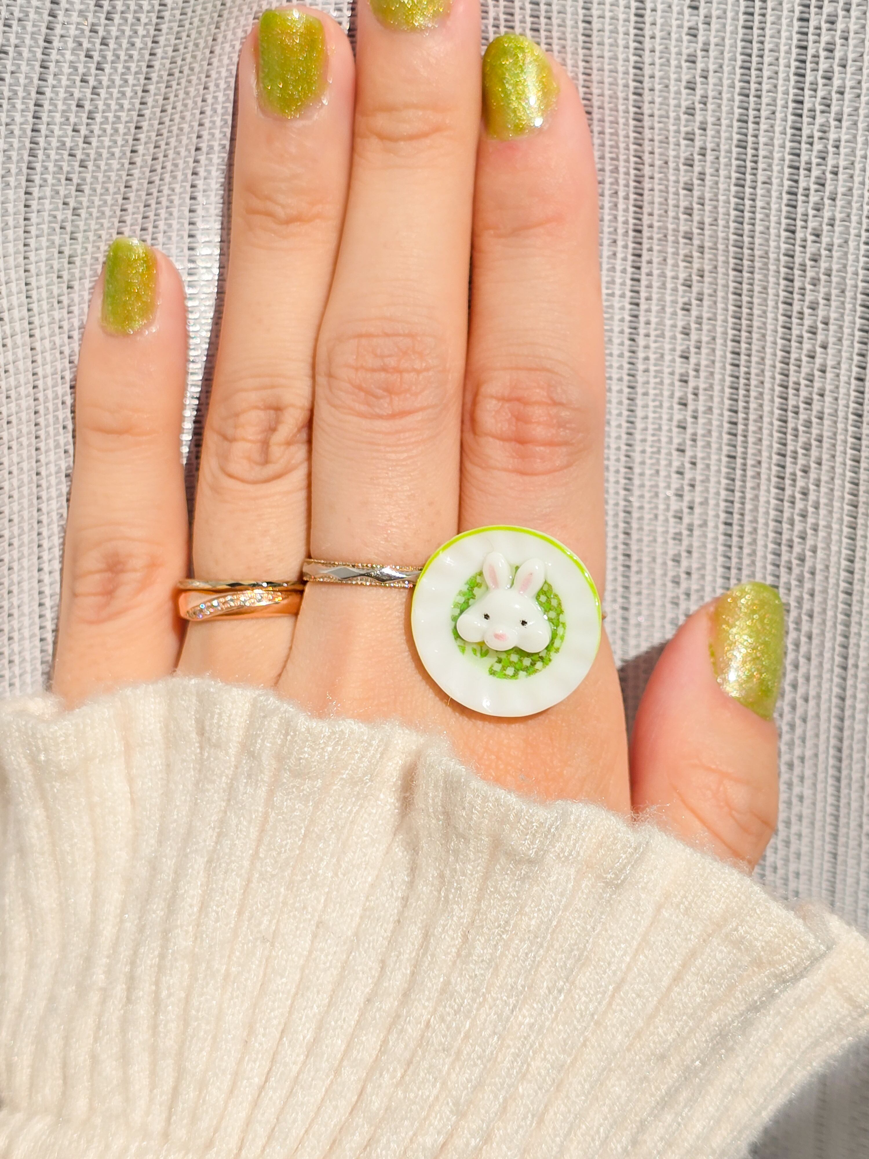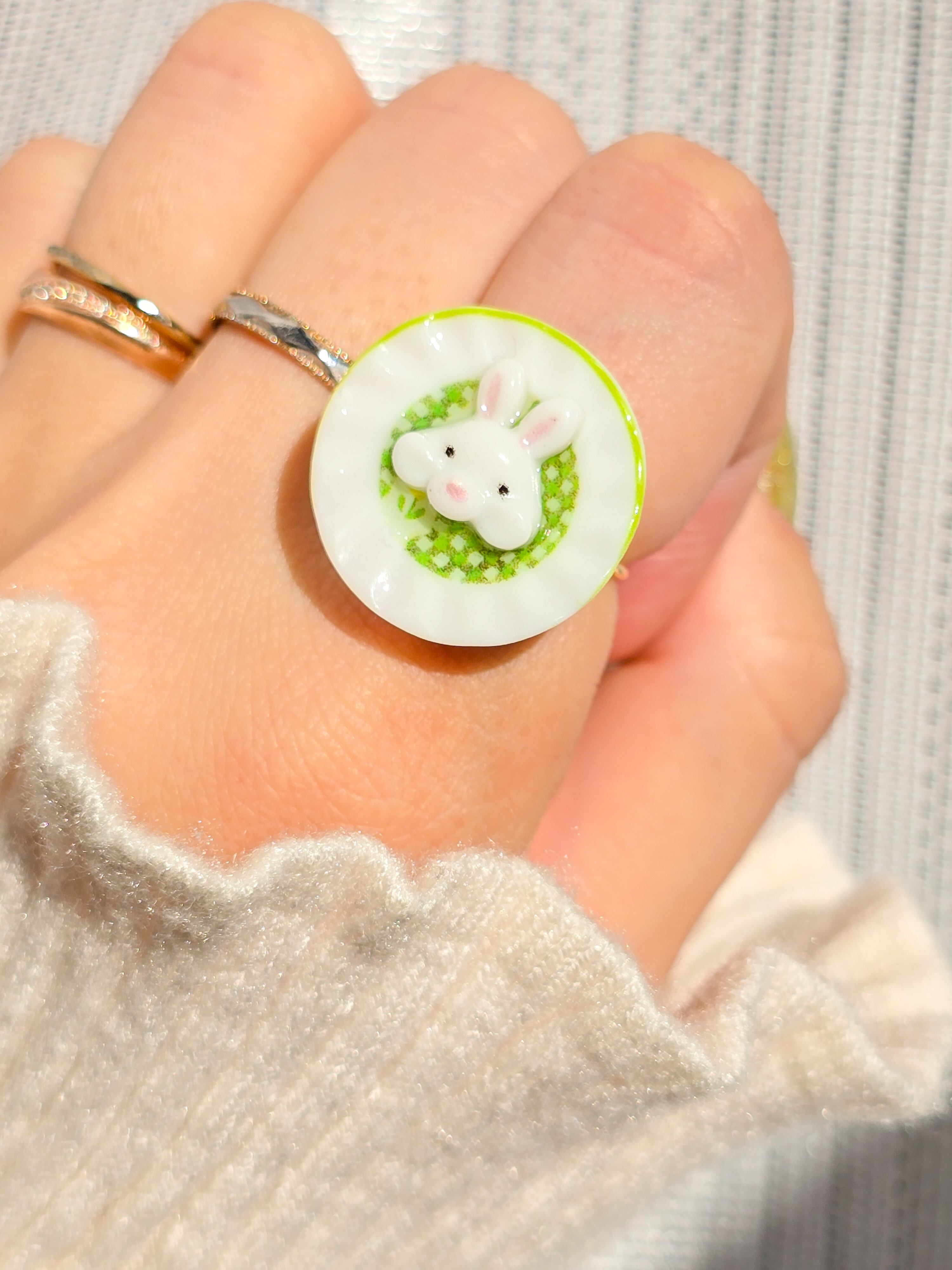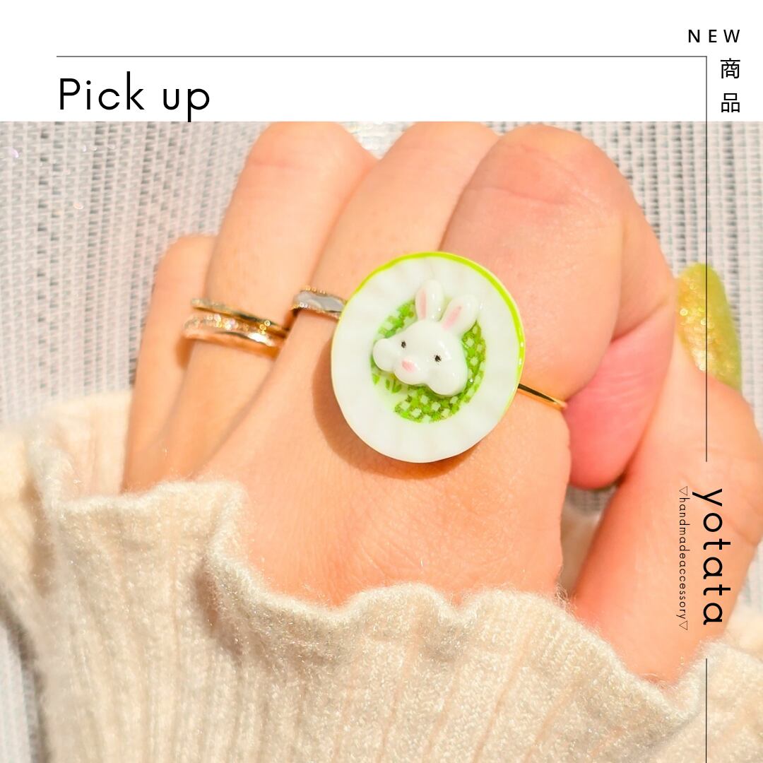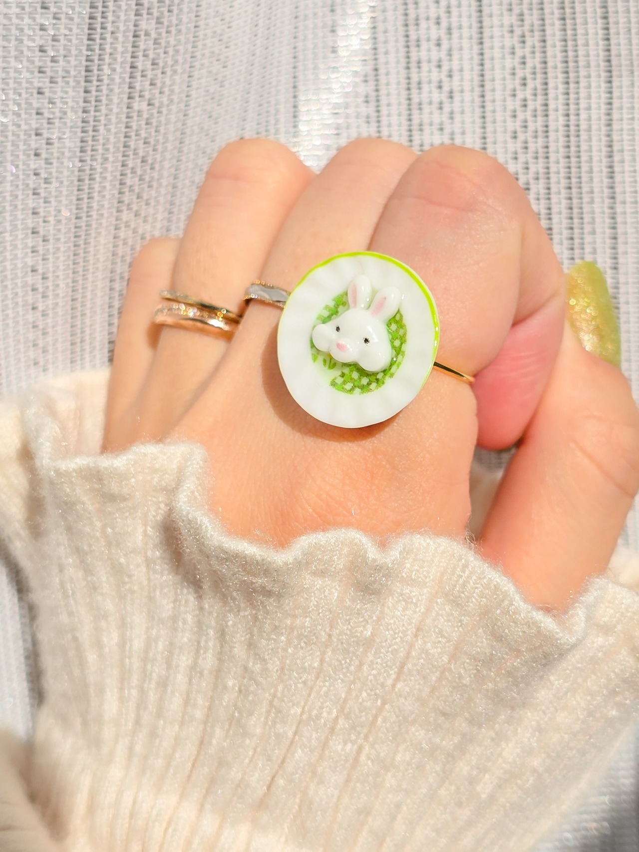 チェック柄のデザインに愛らしい うさぎちゃんがデザインされた丸型のリングが遊び心を添えます❁︎