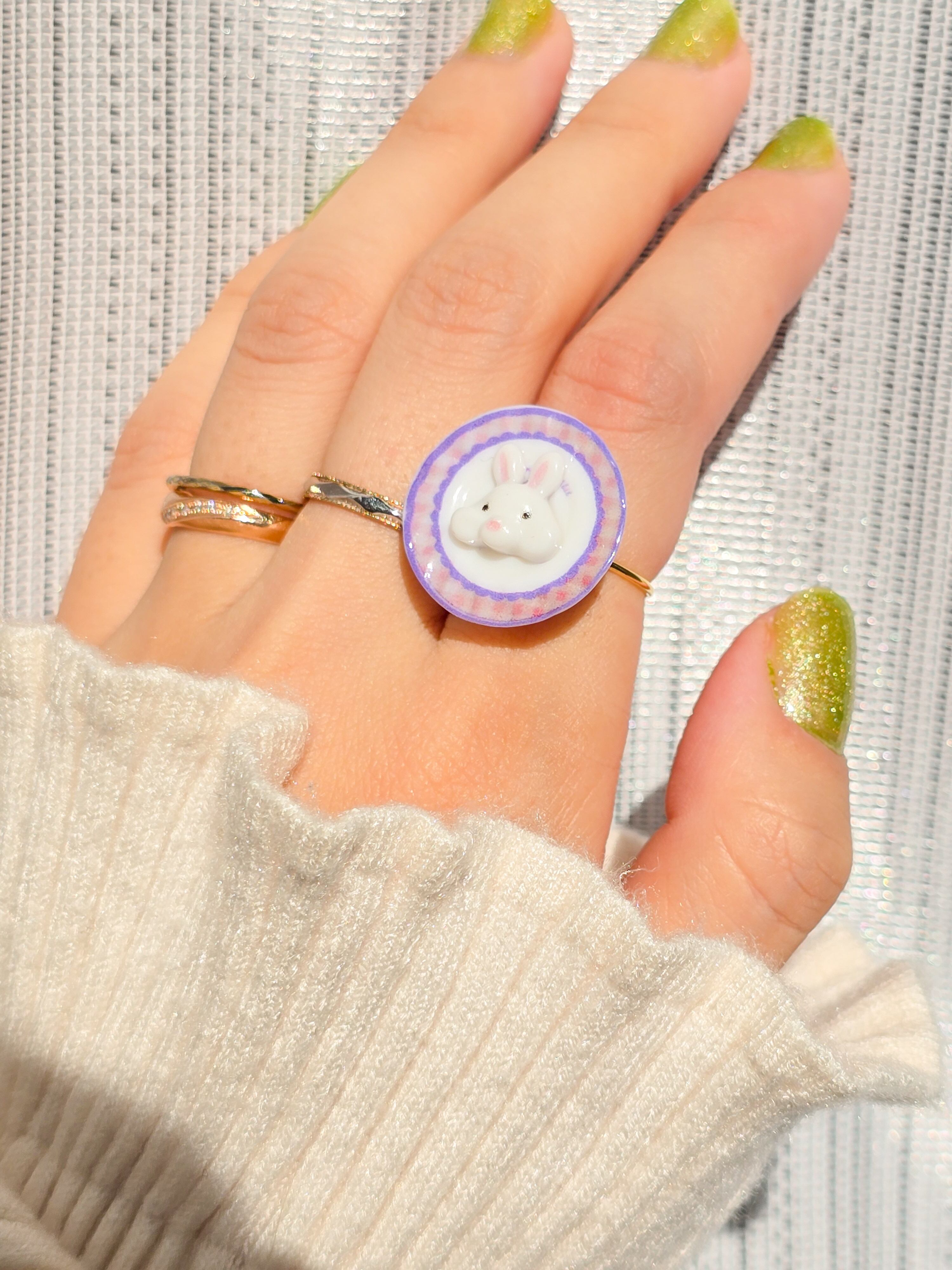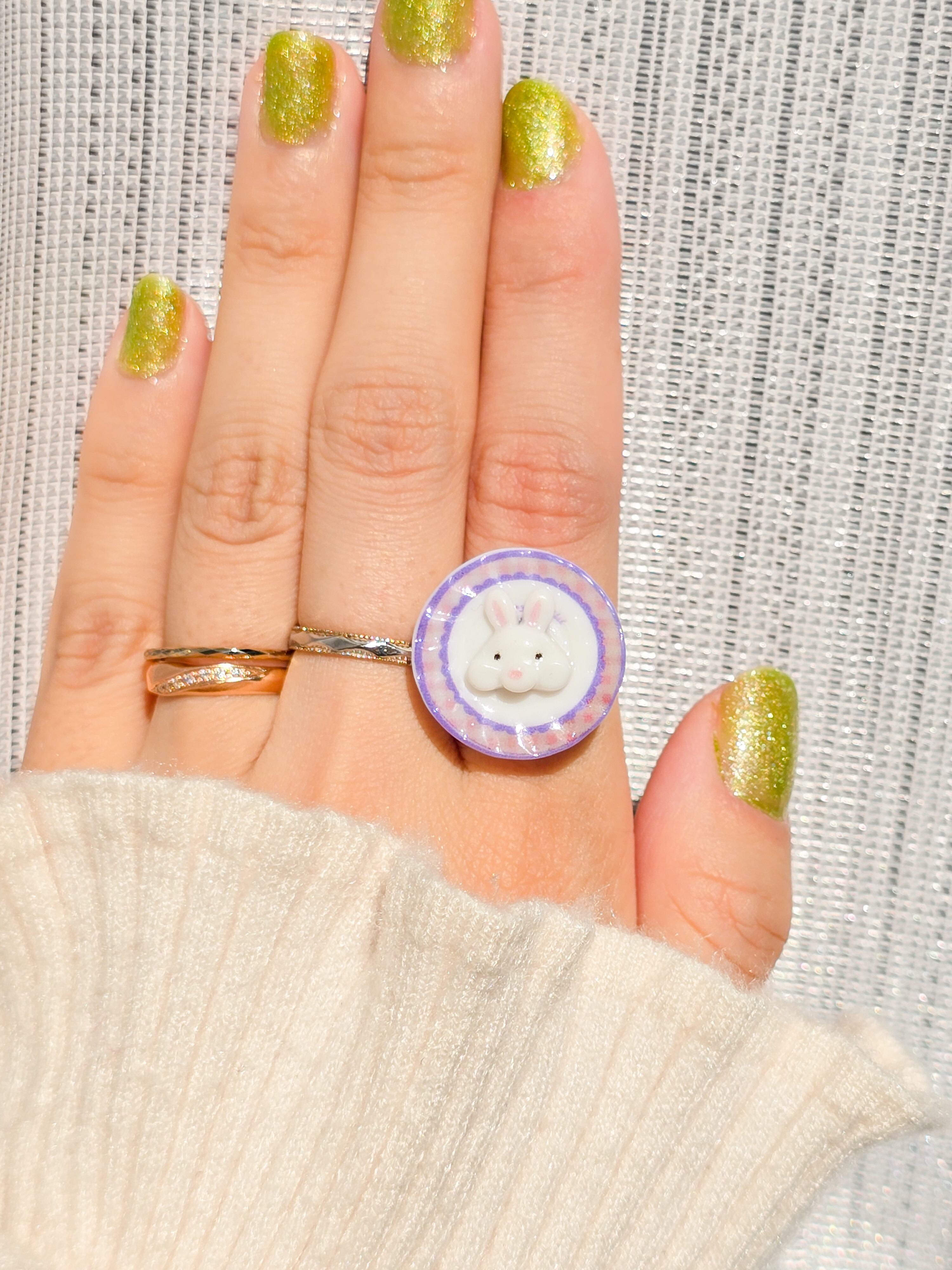 パープルのデザインに愛らしい うさぎちゃんがデザインされた丸型のリングが遊び心を添えます❁︎