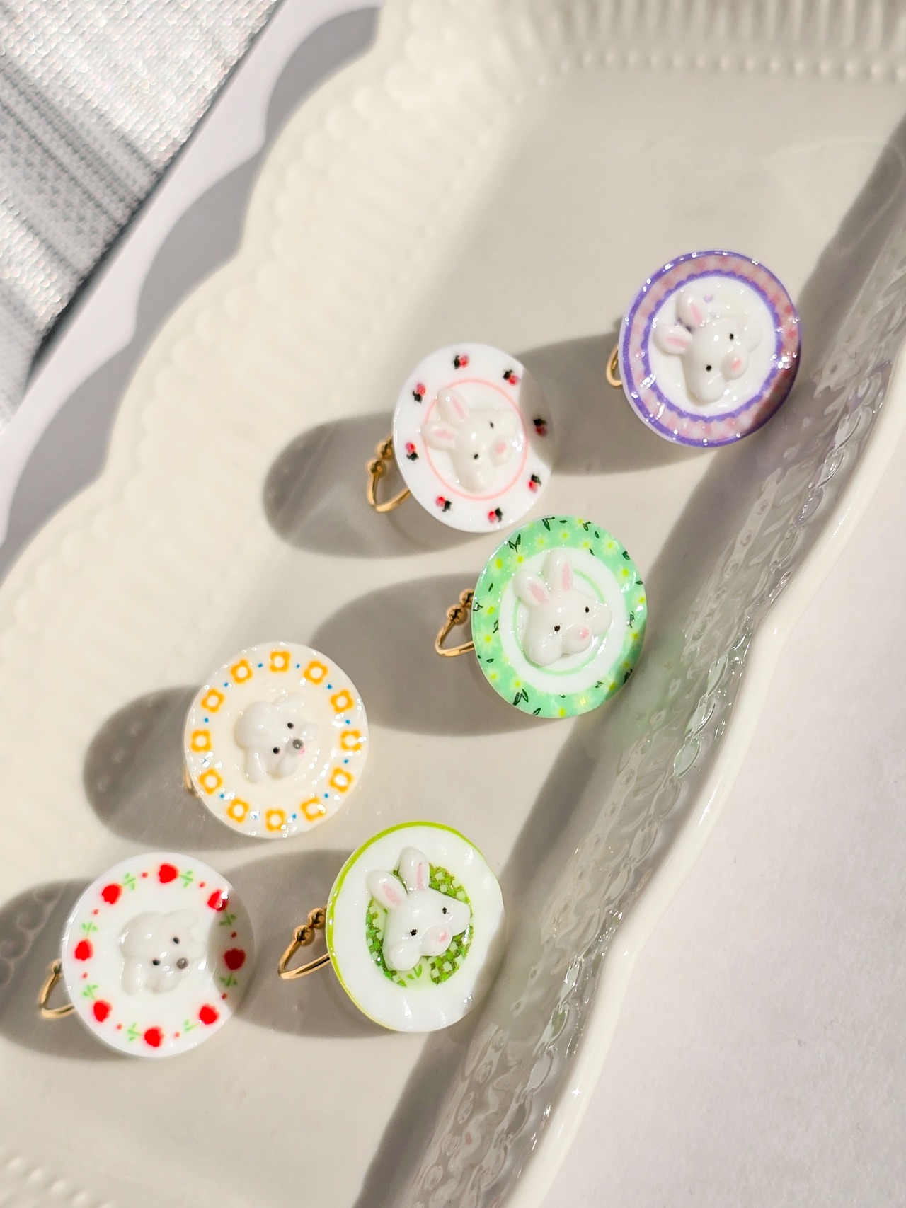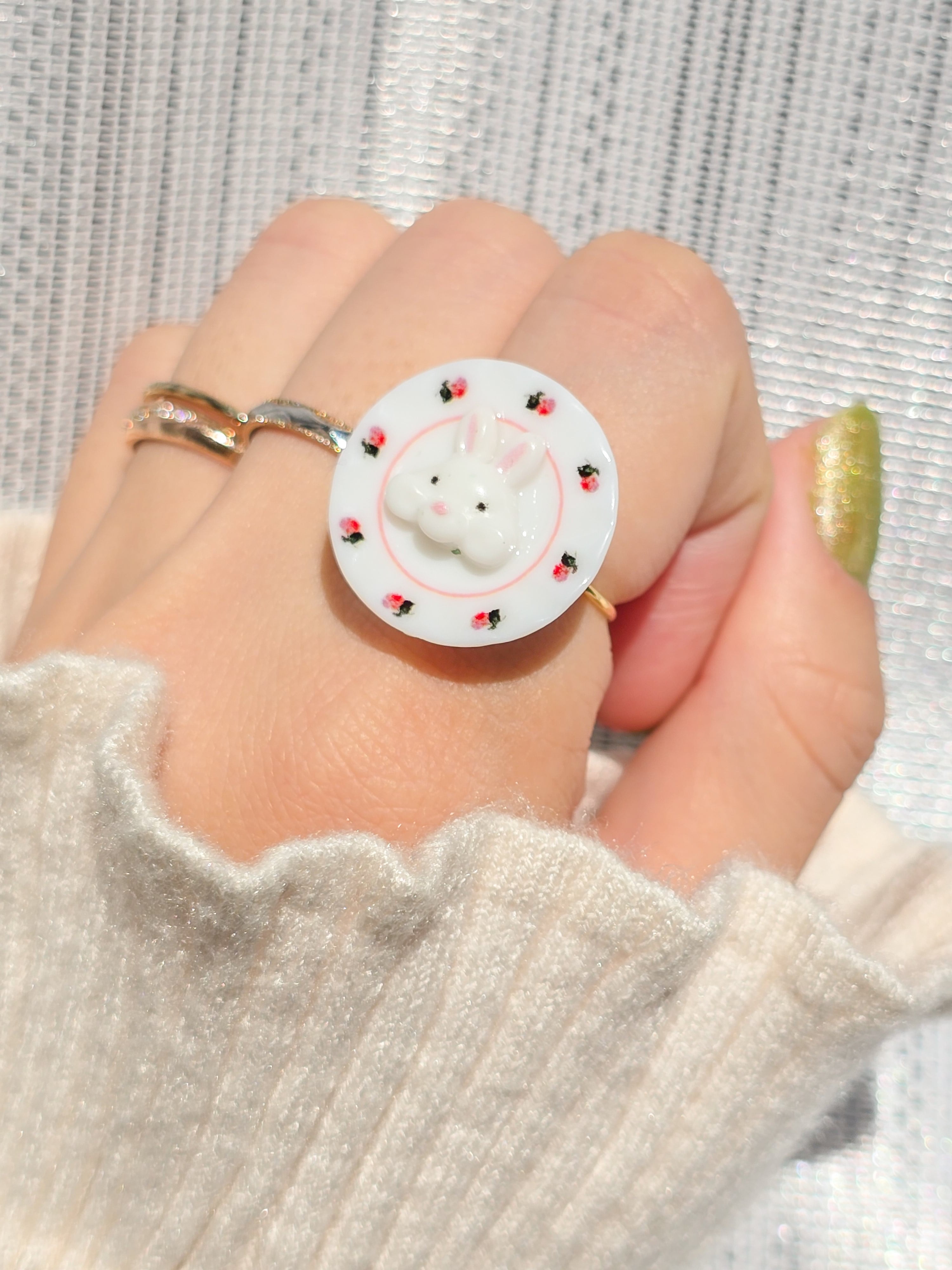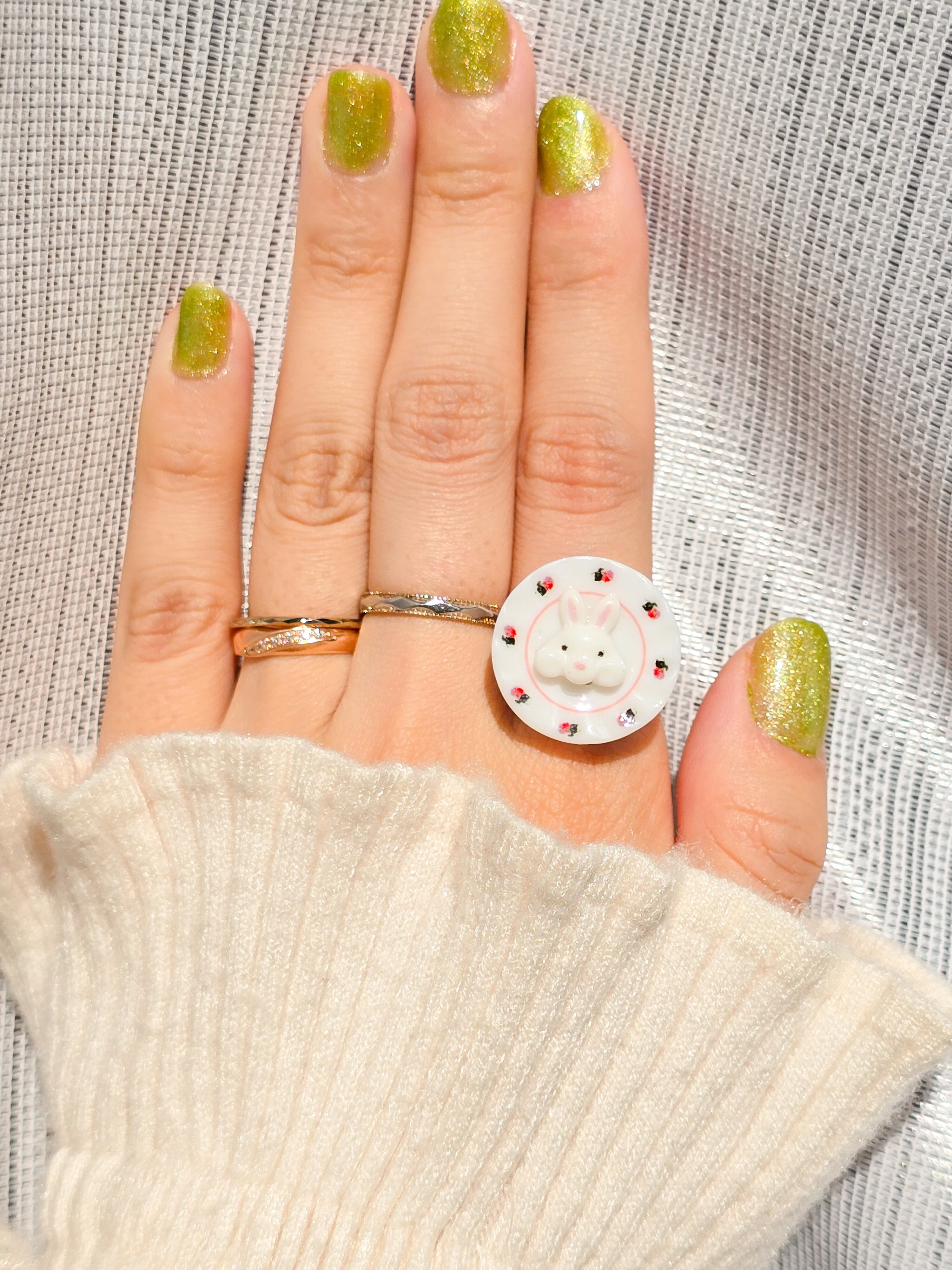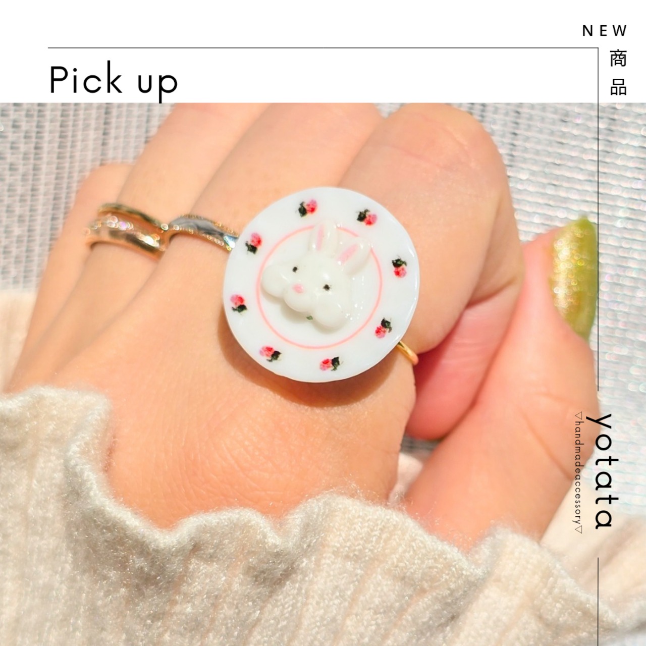 いちご柄のデザインに愛らしい うさぎちゃんがデザインされた丸型のリングが遊び心を添えます❁︎