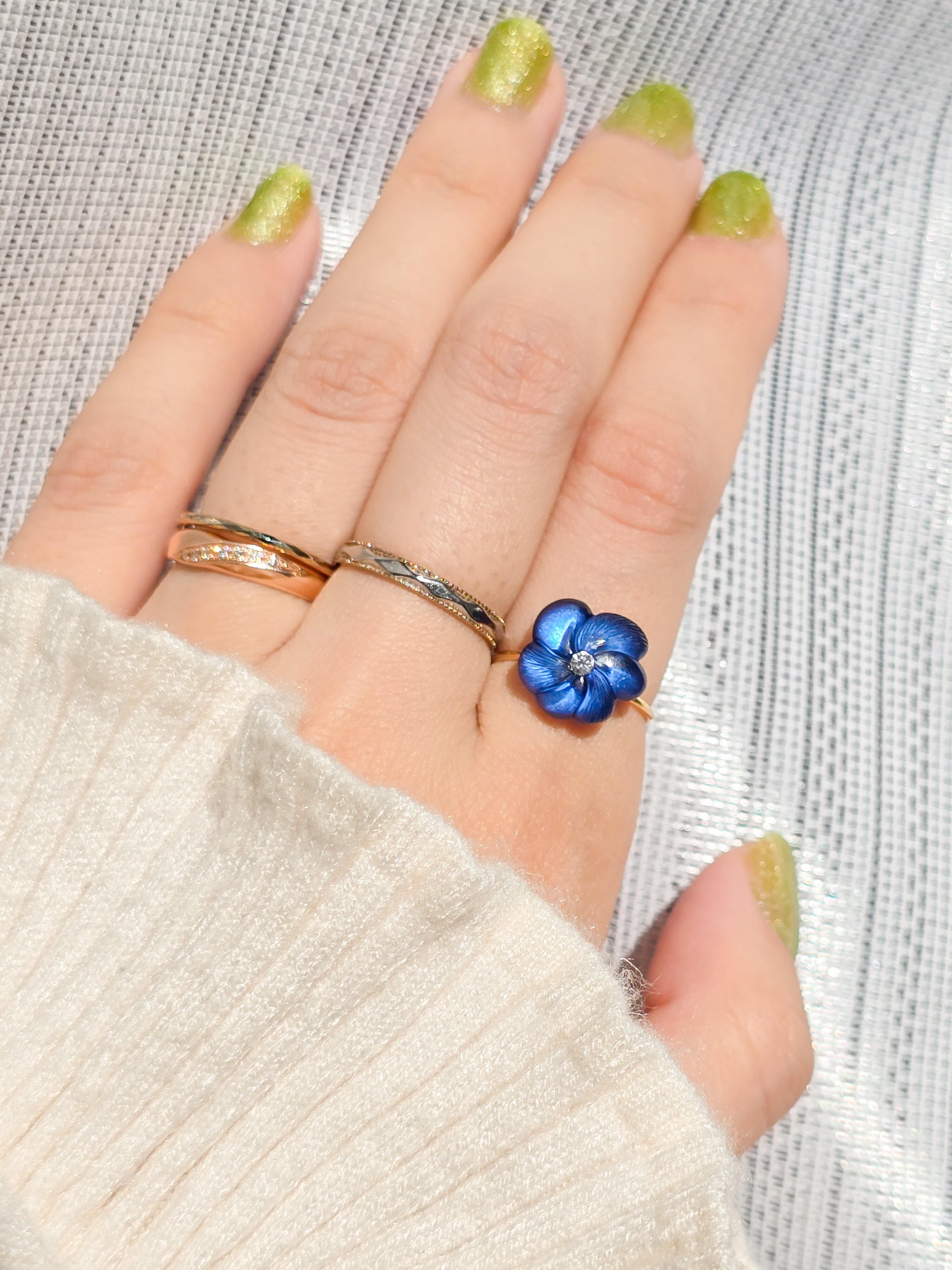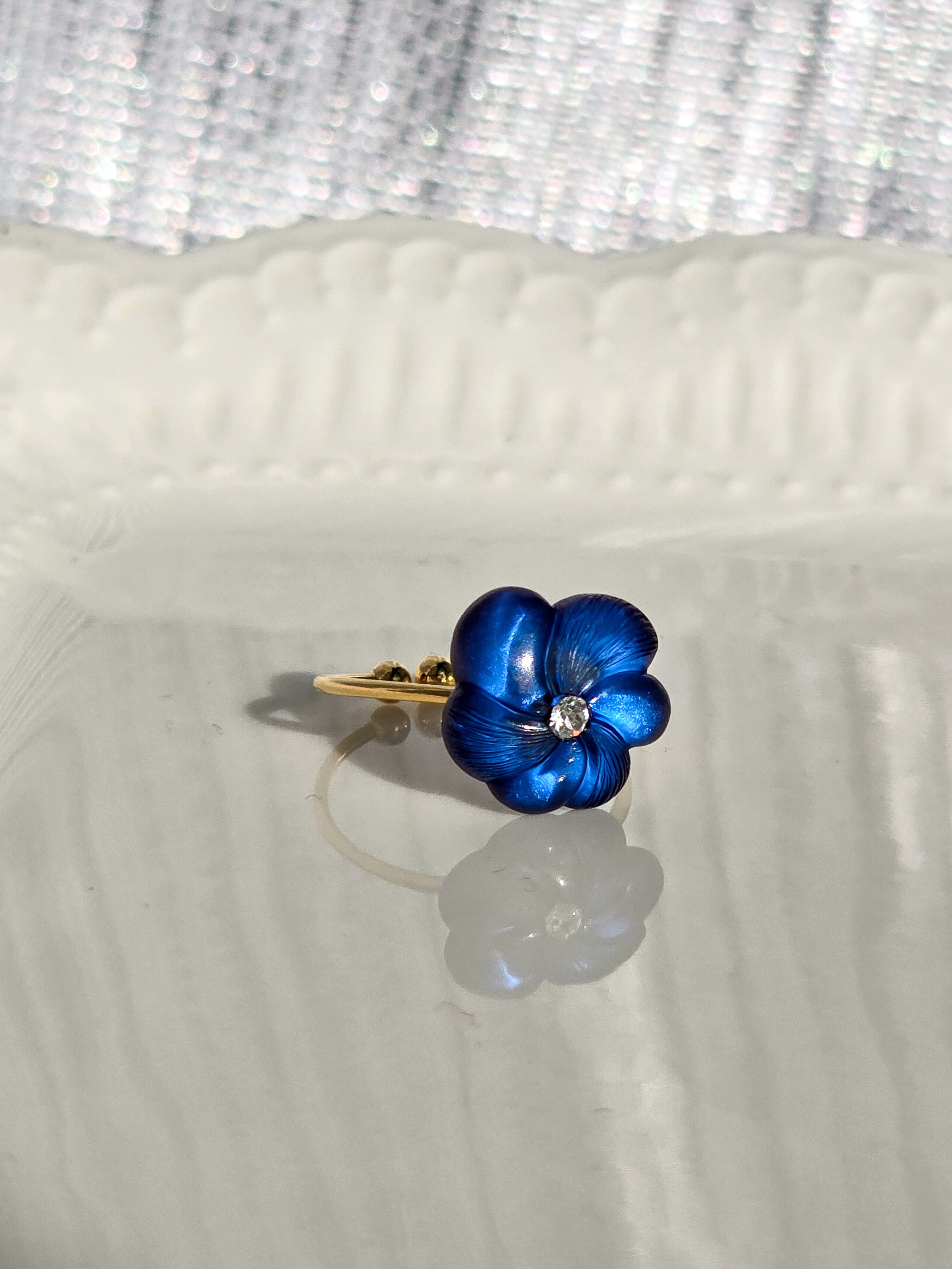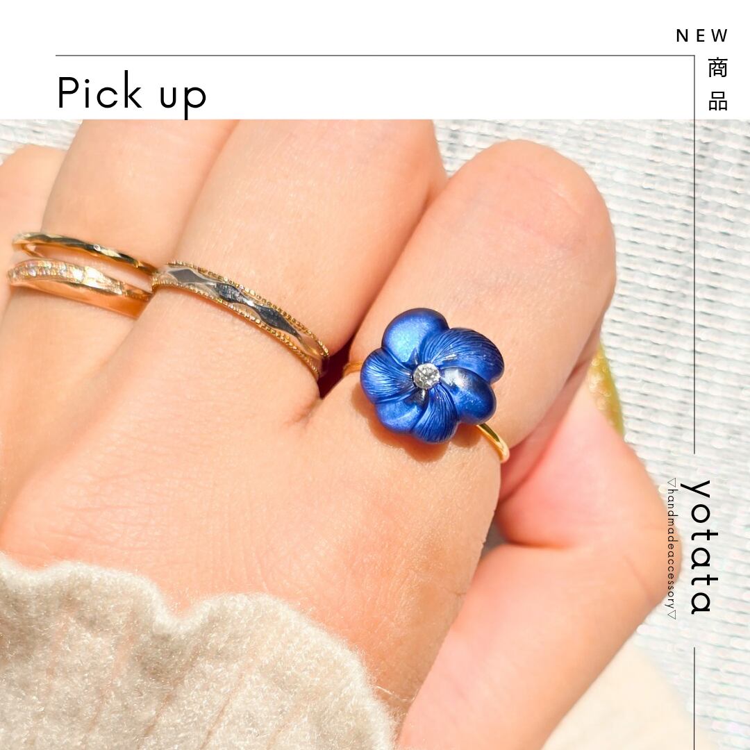 レトロボタンの中に彩る輝きが独特の魅力があり、女性らしさも溢れるリングです。