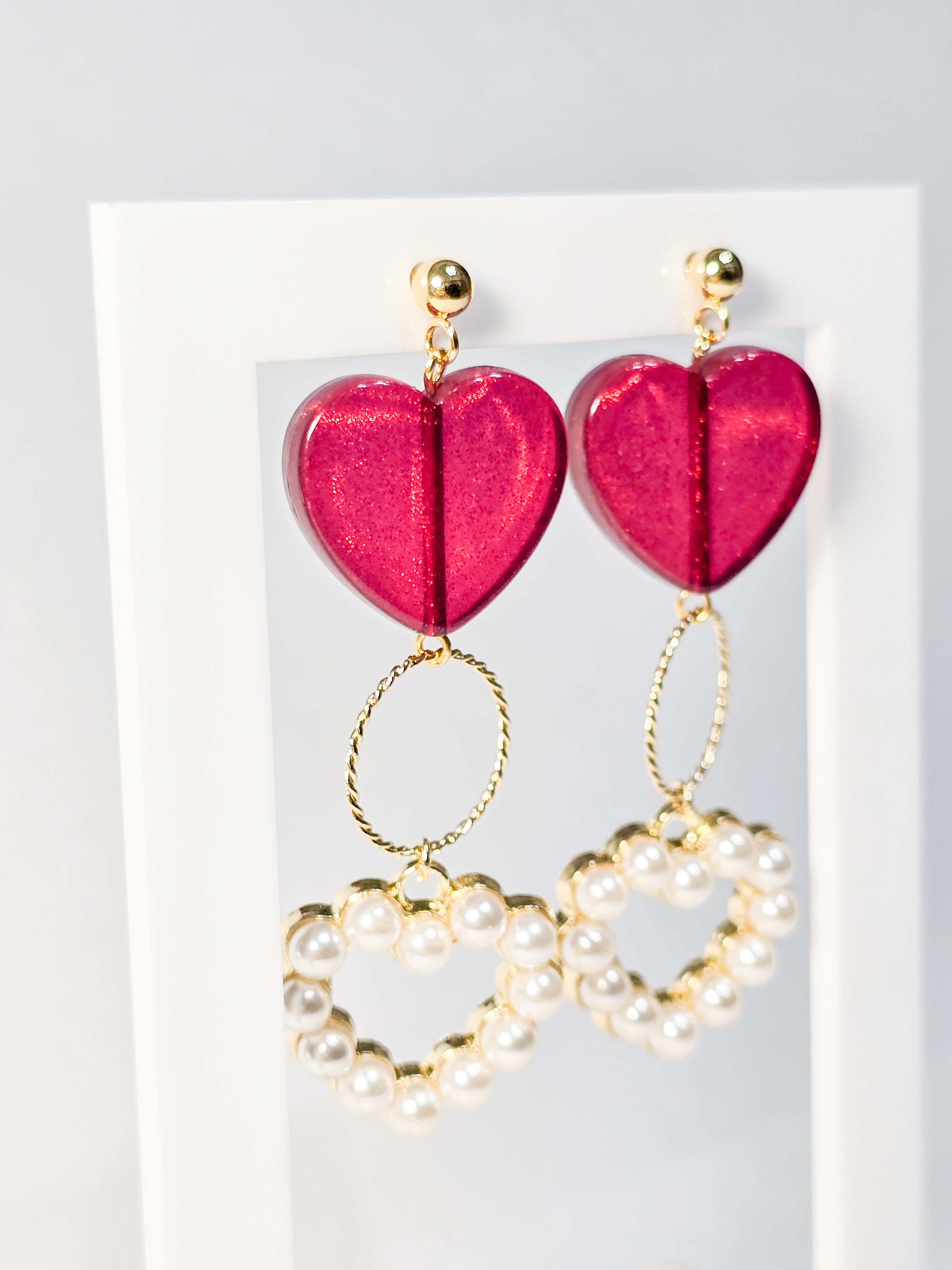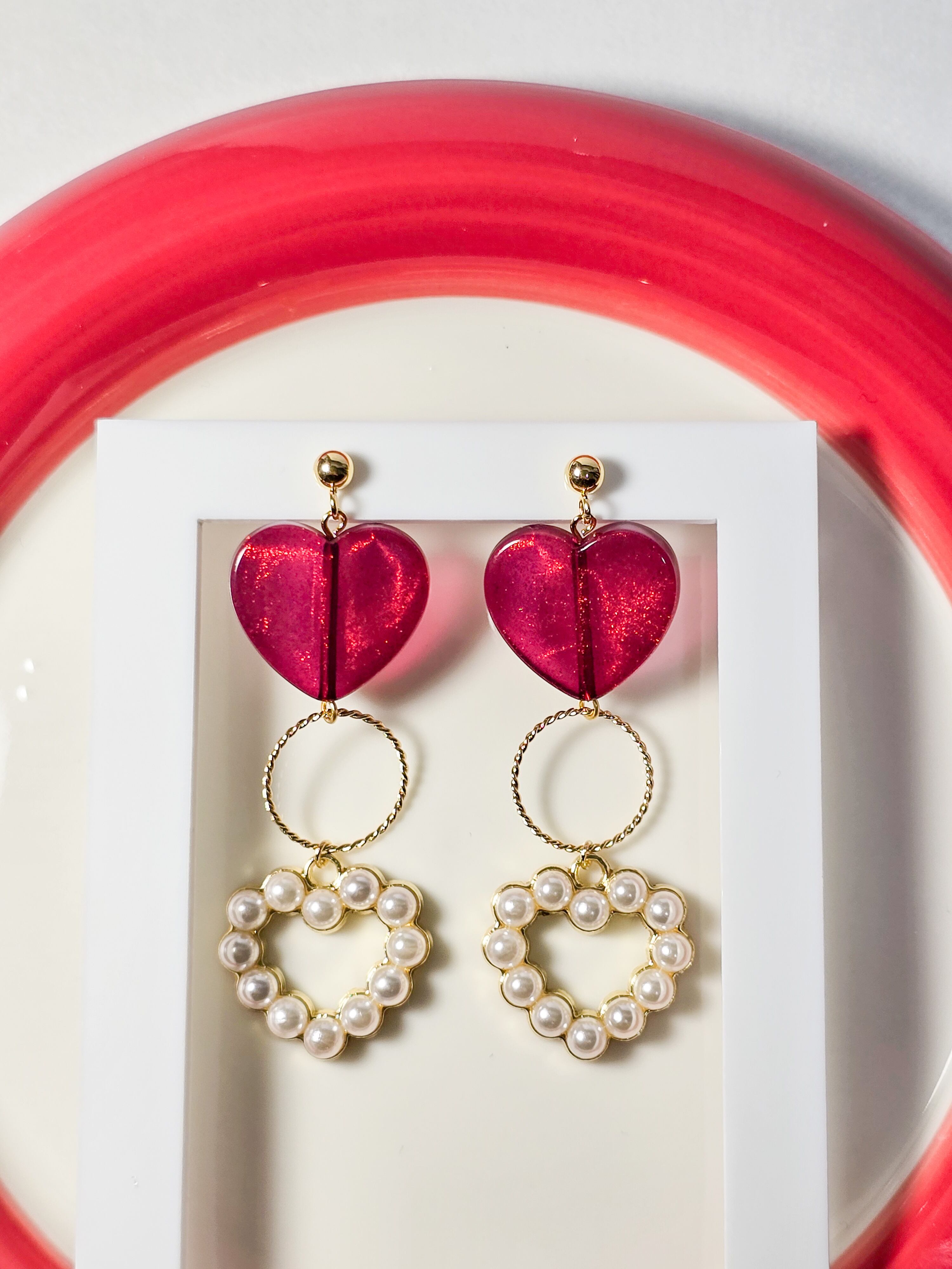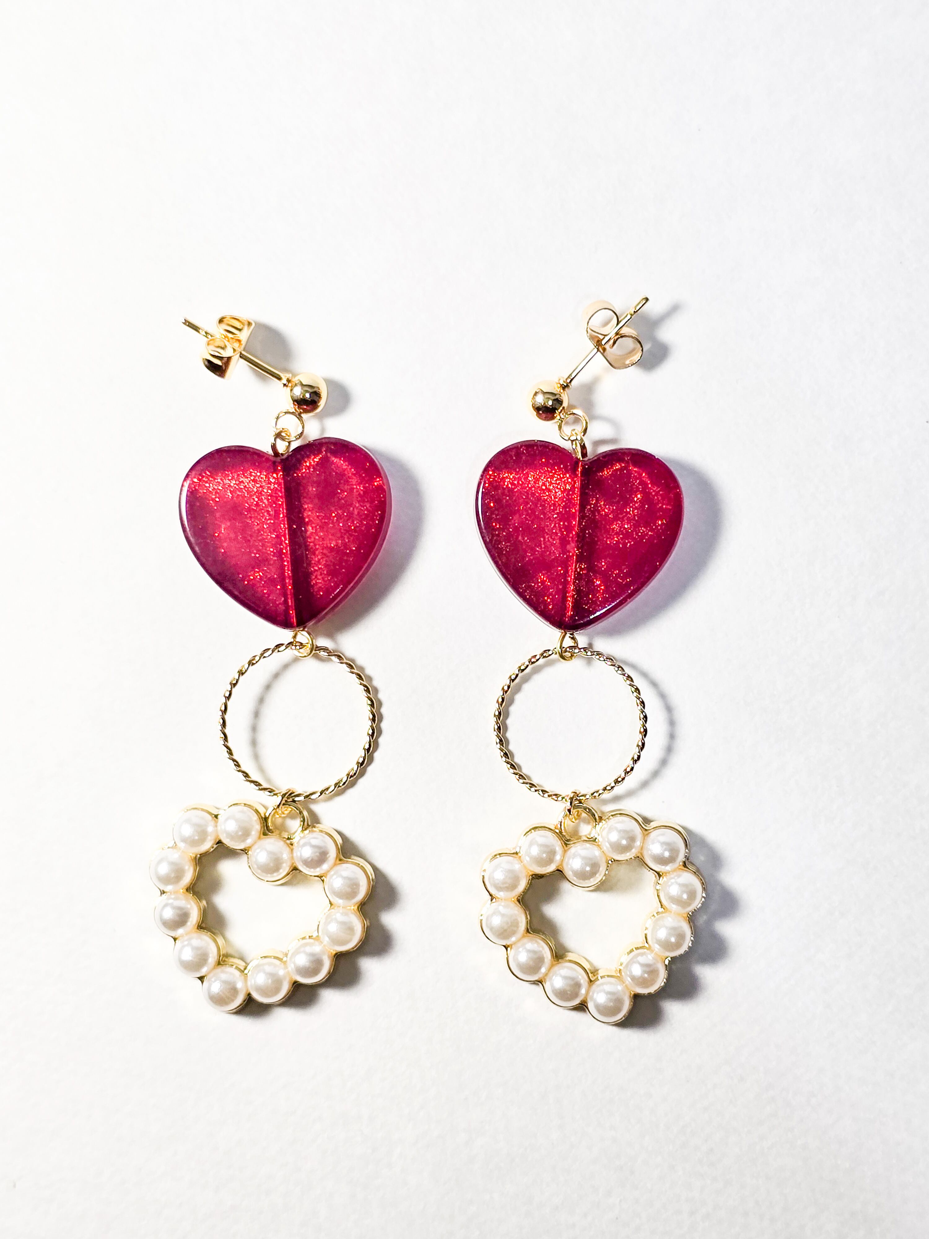 華やかなハート型のパールチャームに、キラキラと深みのあるオーロラディープレッドのハートが華やかさを添えてくれます❁︎