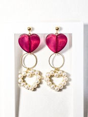 耳元で揺れるハートのモチーフが、シンプルなコーディネートにもアクセントを加え、目を引く存在感を演出します❁︎